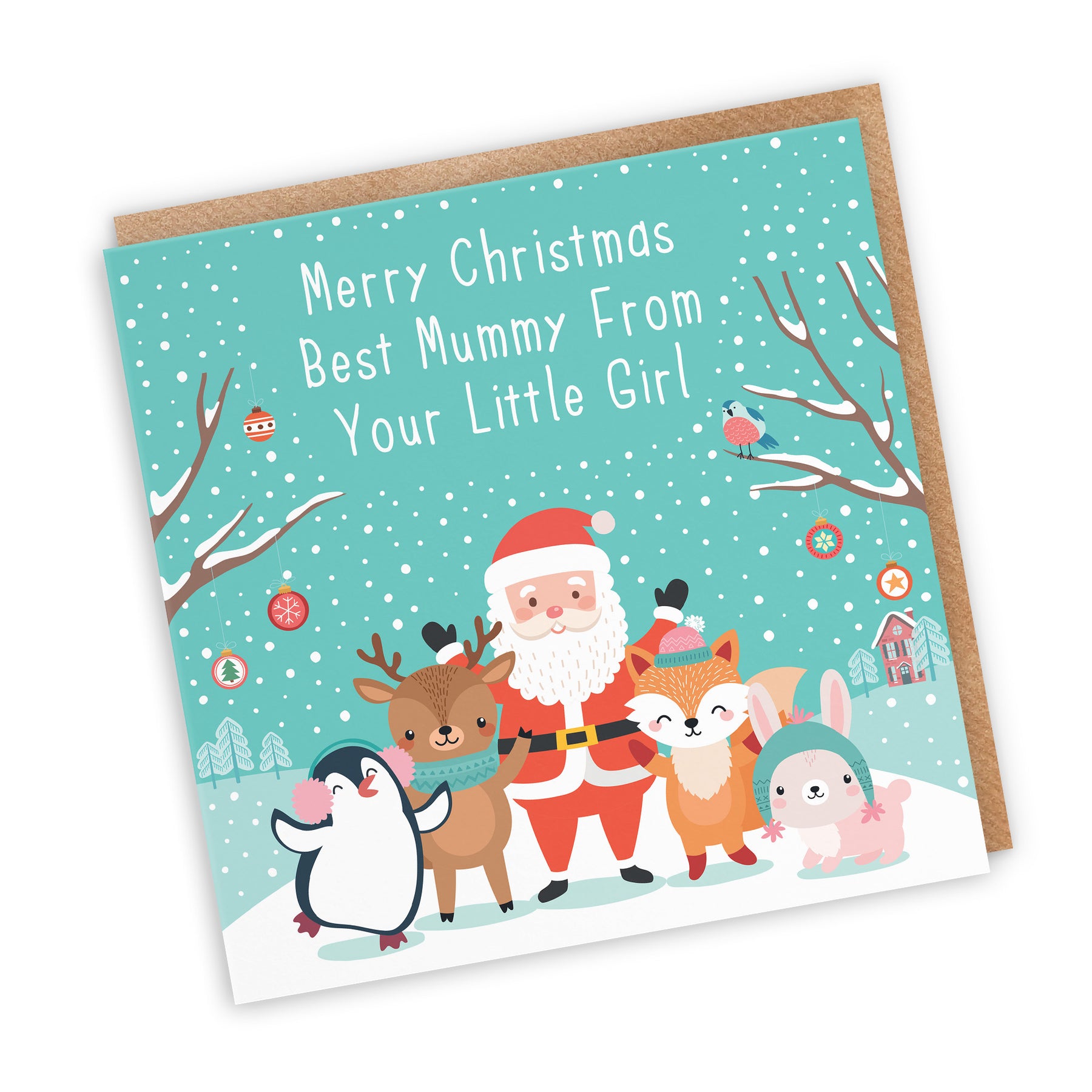 Hunts England - Mummy Christmas Card From Your Little Girl - Merry Christmas Best Mummy From Your Little Girl - Santa & Friends Collection.