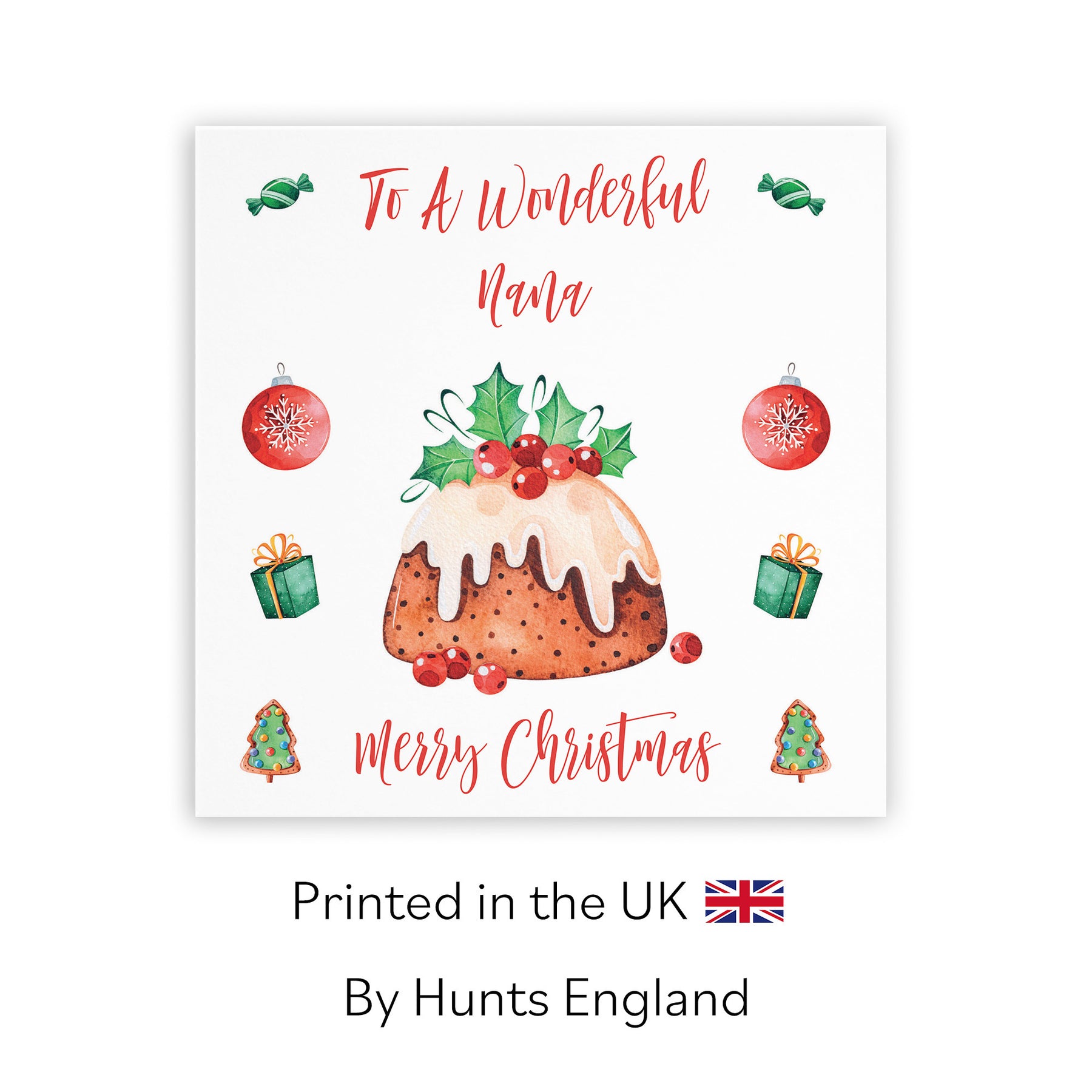 Hunts England - Nana Christmas Card - To A Wonderful Nana - Christmas Pudding Collection.