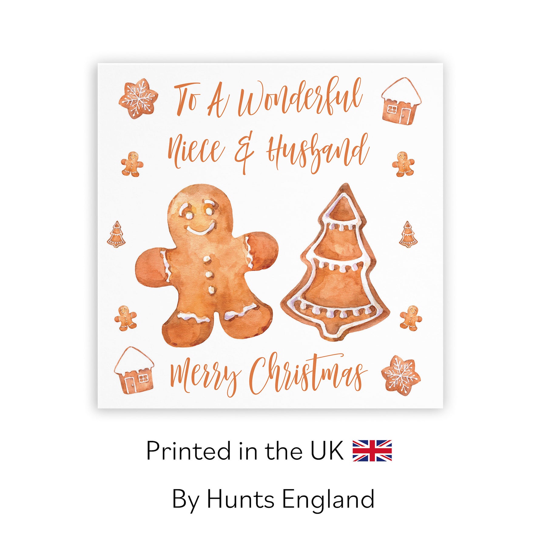 Hunts England - Niece And Husband Christmas Card - To A Wonderful Niece & Husband - Merry Christmas - Gingerbread Collection.