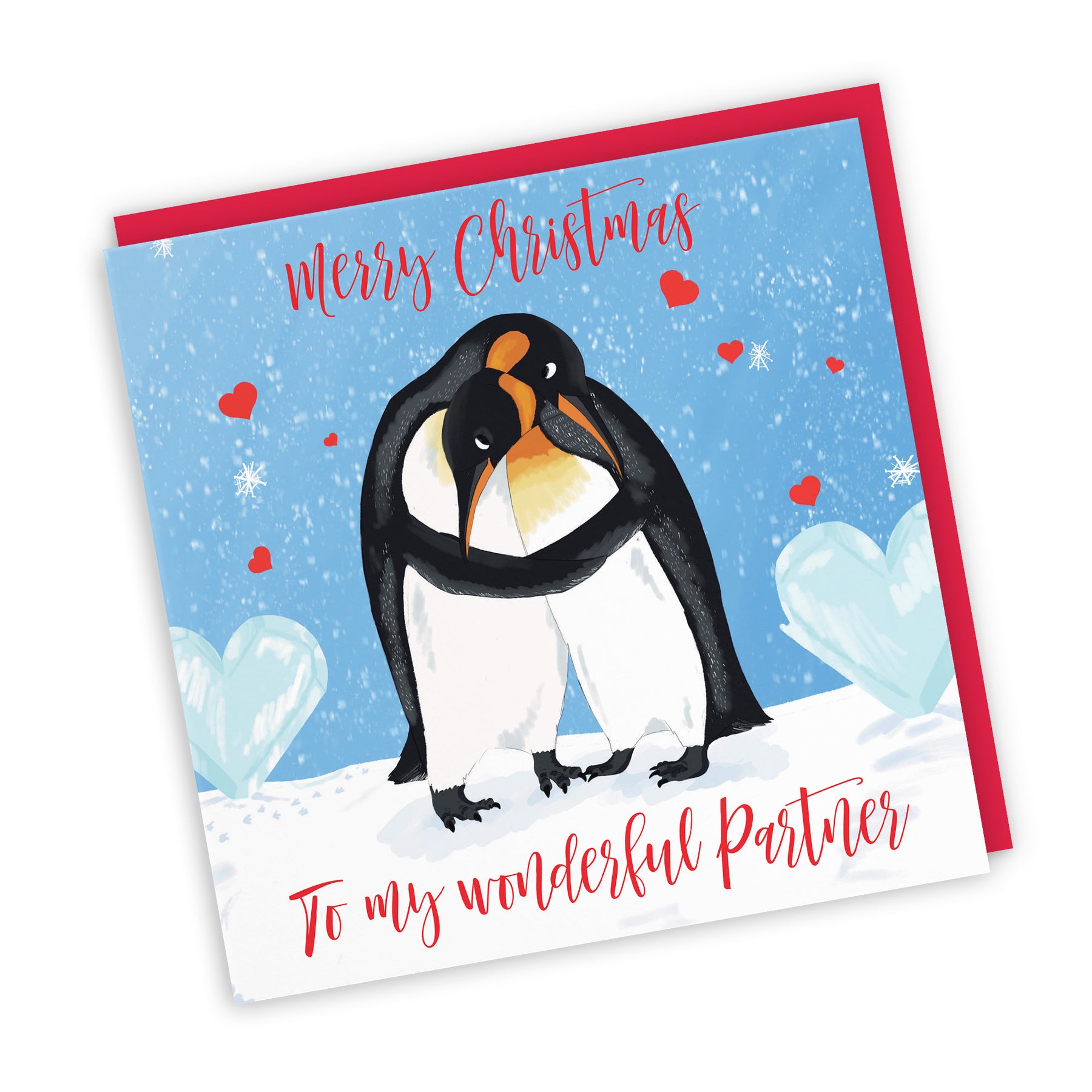 Hunts England - Romantic Partner Penguins Hugging Christmas Card - Merry Christmas - To My Wonderful Partner - Xmas Card - Cute Animals Collection.