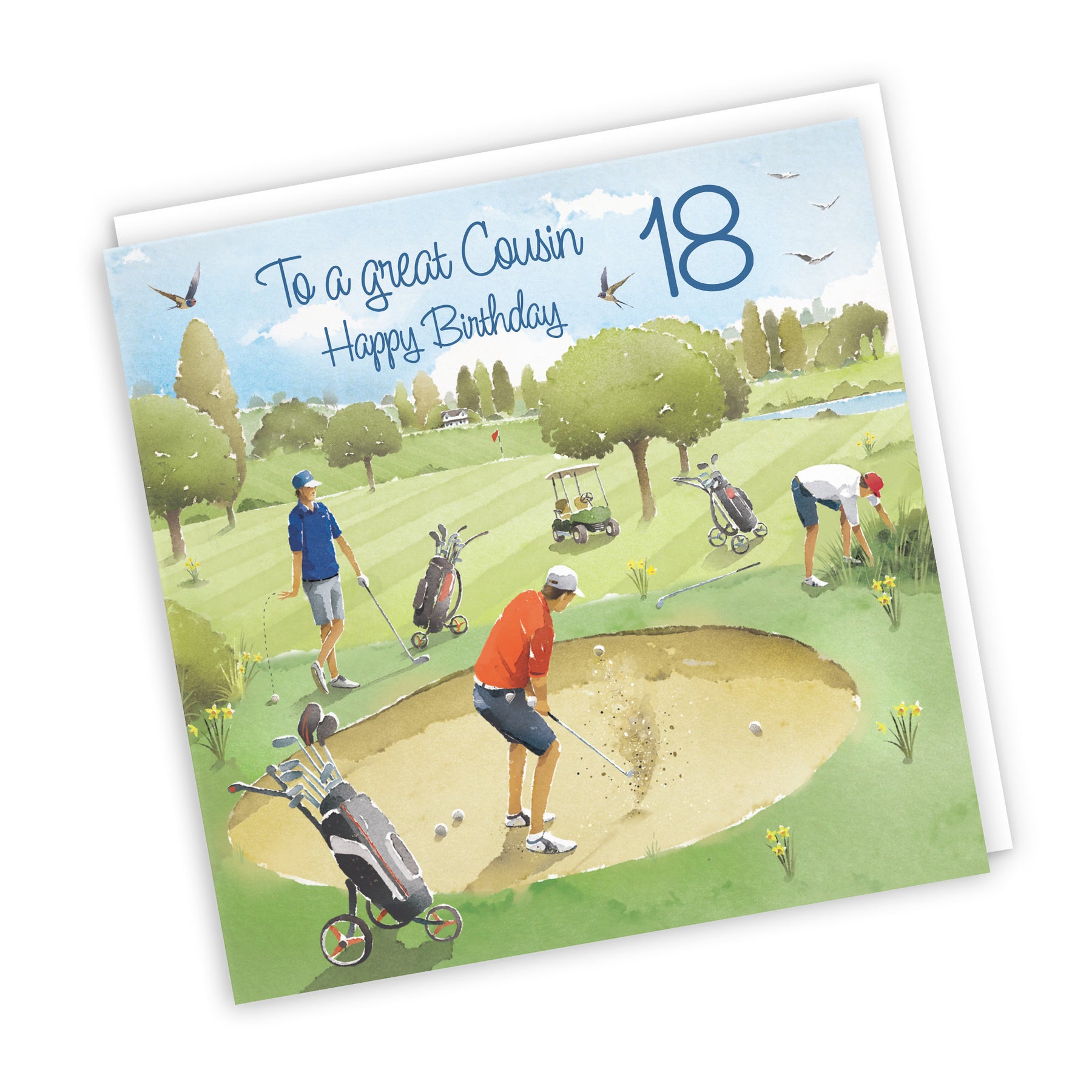 Hunts England - 18th Cousin Golfing Birthday Card - Age 18 Card For Cousin - 'Golf Bunker' - Milo's Gallery Collection - Age Eighteen Birthday - 18 Year Old.