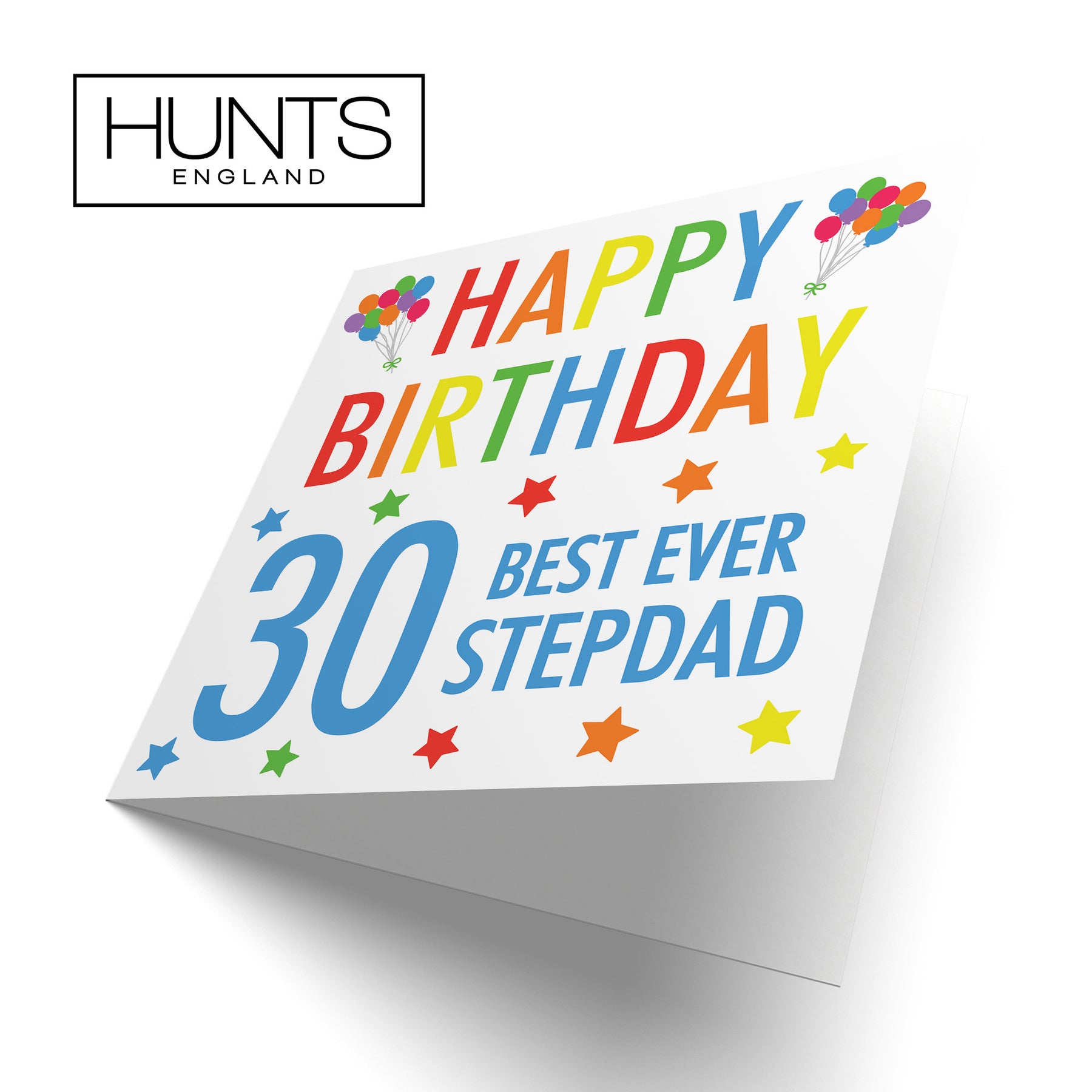 Hunts England - Stepdad 30th Birthday Card - 'Happy Birthday' - 'Best Ever Stepdad' - Colourful Collection.
