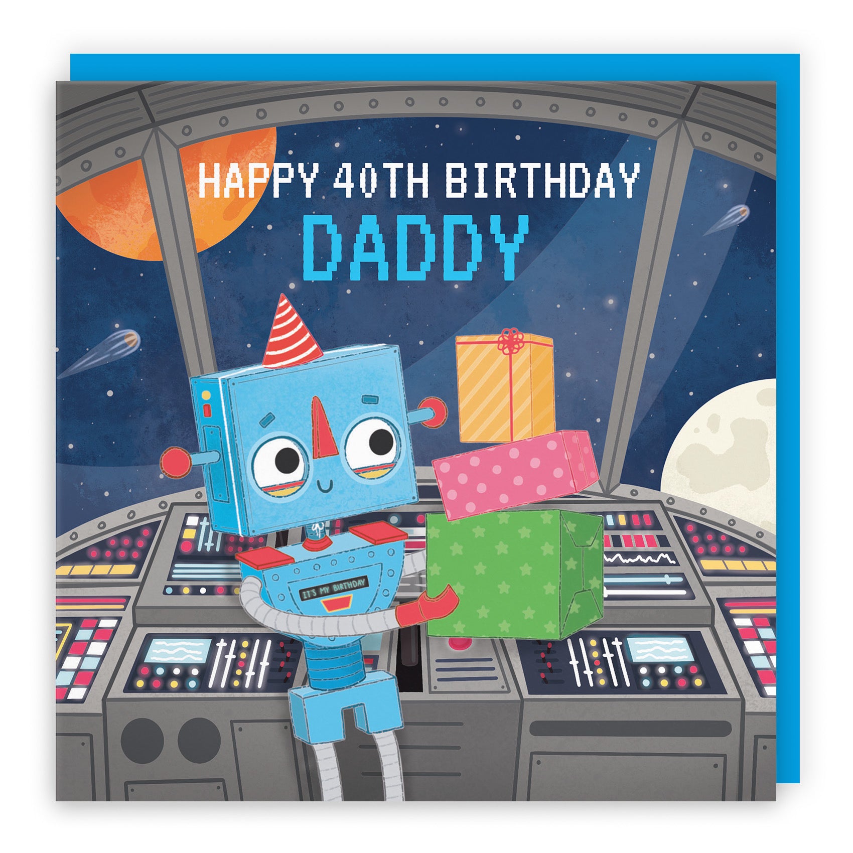 Hunts England - Daddy 40th Space Robot Birthday Card - Happy 40th Birthday - Daddy - Robot On A Spaceship - Imagination Collection.