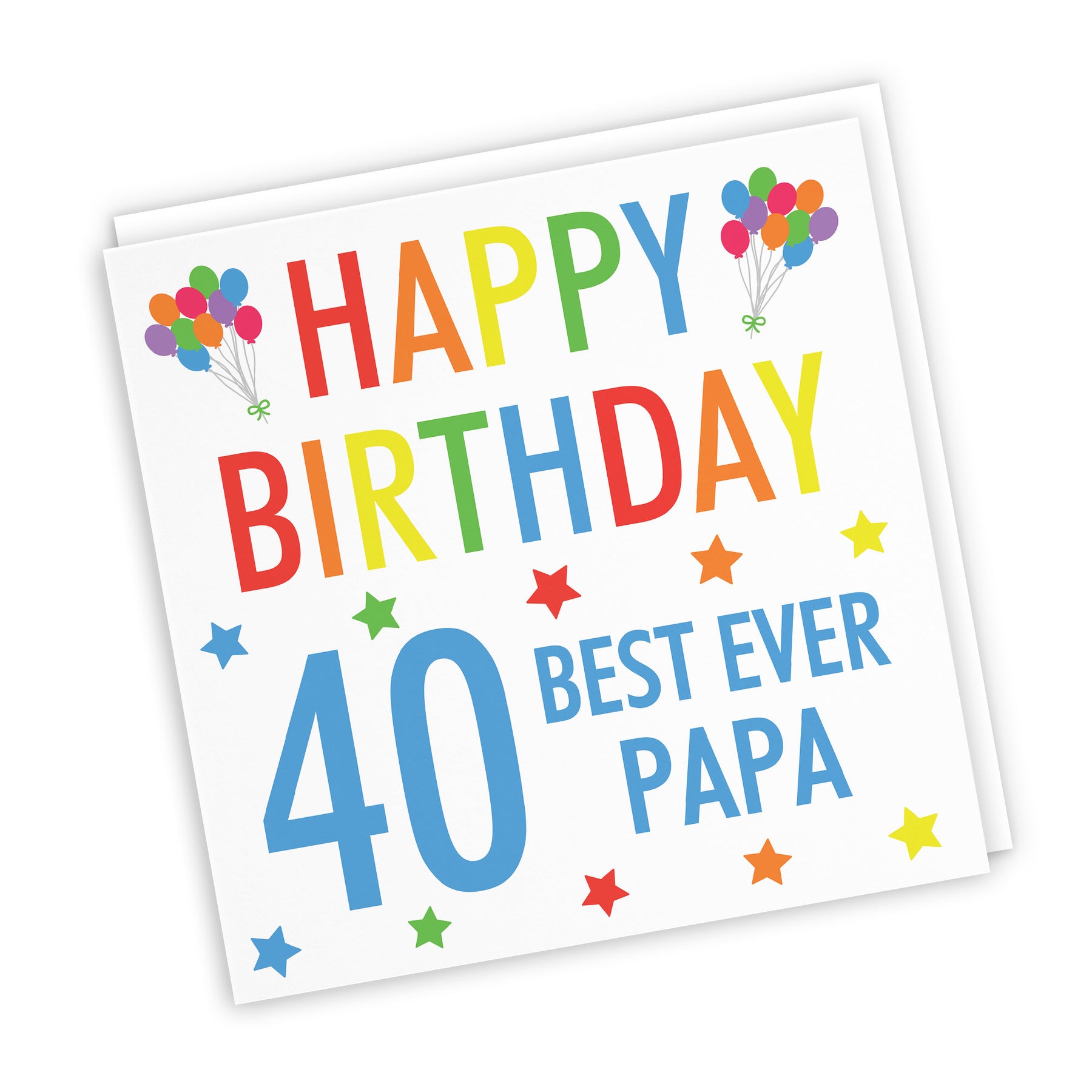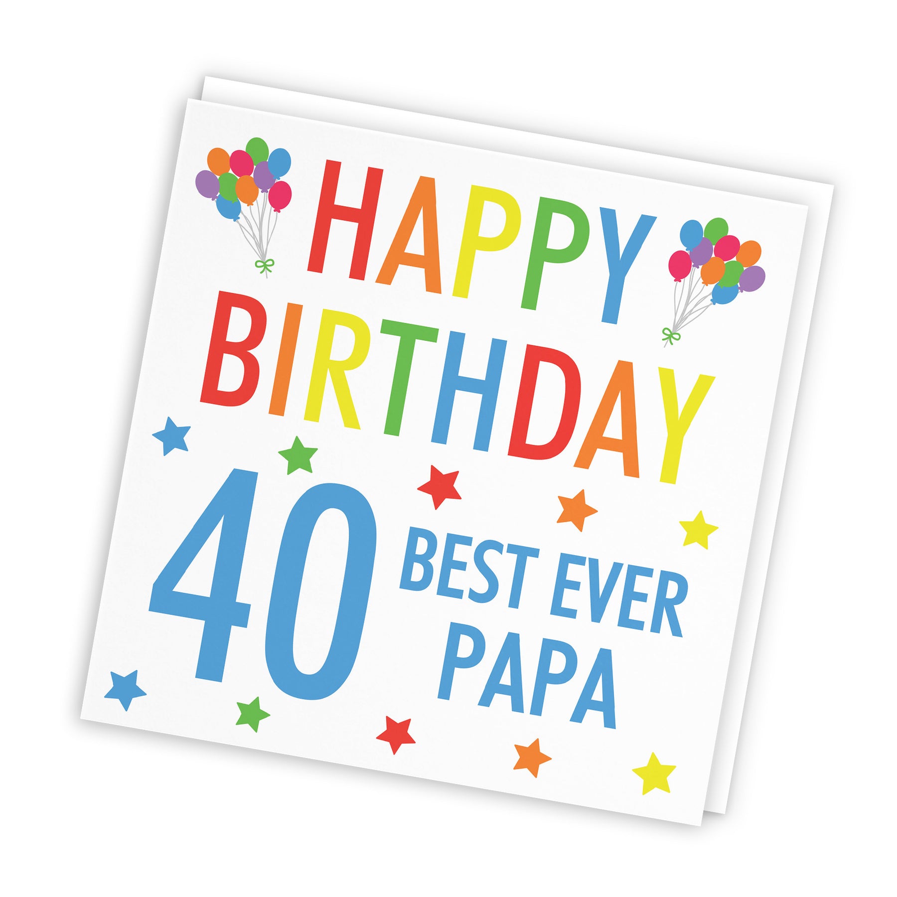 Hunts England - Papa 40th Birthday Card - Happy Birthday - 40 - Best Ever Papa - Colourful Collection.