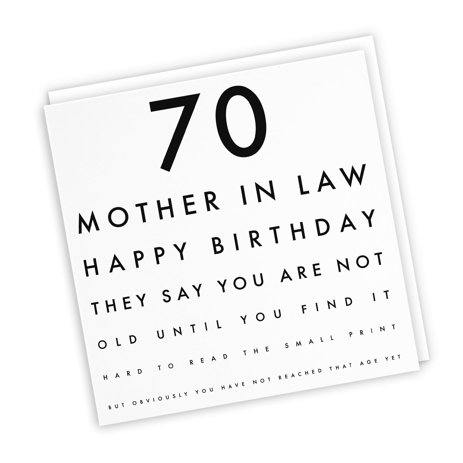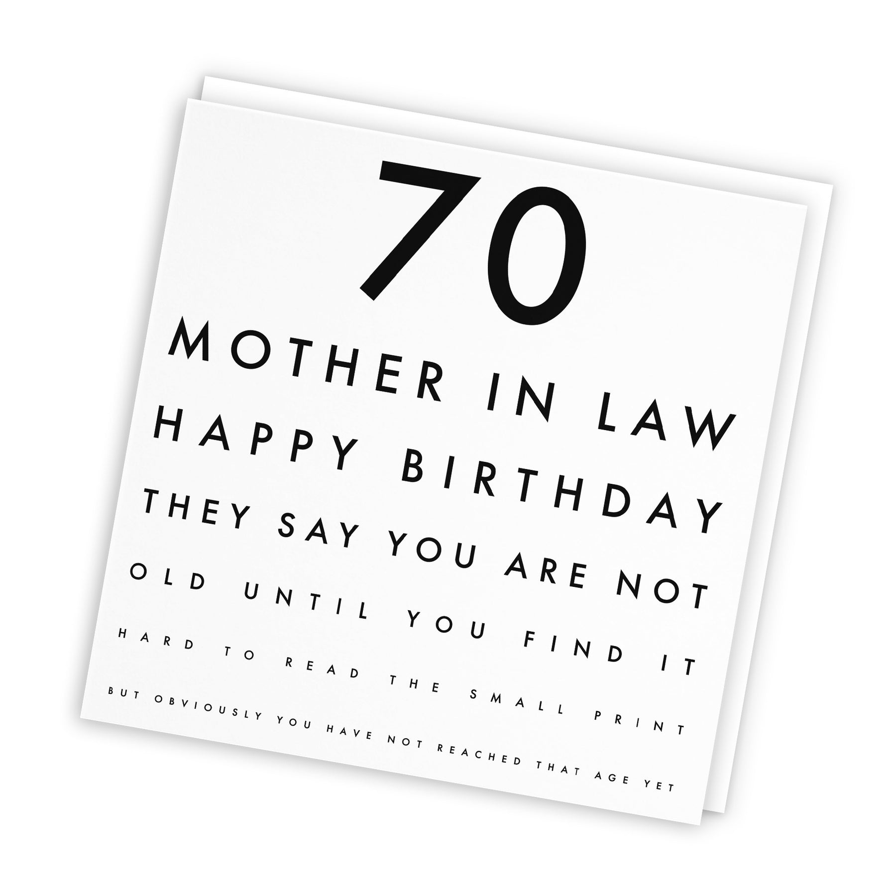 Hunts England - Mother In Law 70th Humorous Birthday Card - 70 Mother In Law - Happy Birthday - They Say You Are Not Old Until You Find It Hard To Read The Small Print... - Letters Collection.