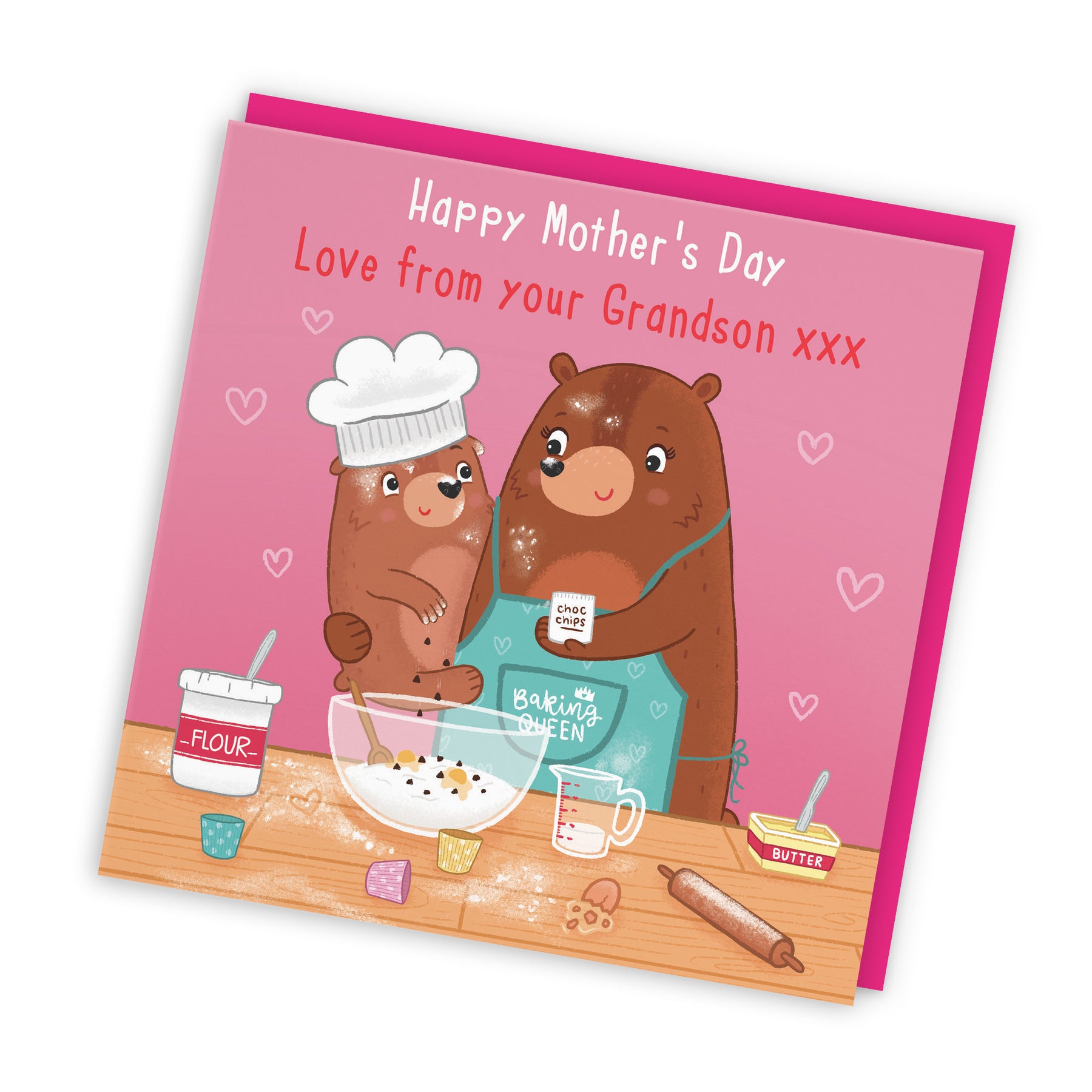 Hunts England - Mother's Day Card From Grandson - Cute Baking Bears - Happy Mother's Day - Love From Your Grandson xxx - Cute Bears Collection.