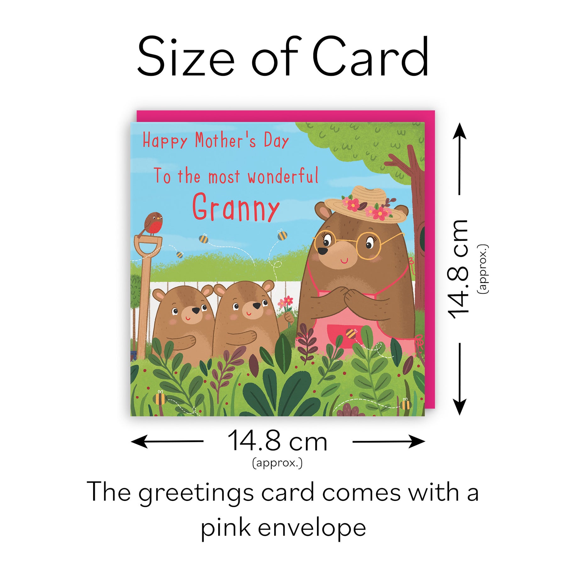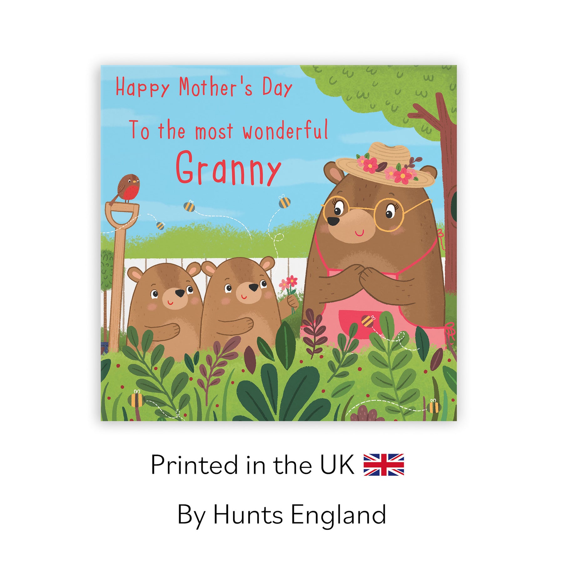 Hunts England - Granny Mother's Day Card From Two Children - Cute Gardening Bears - Happy Mother's Day - To The Most Wonderful Granny - Cute Bears Collection.