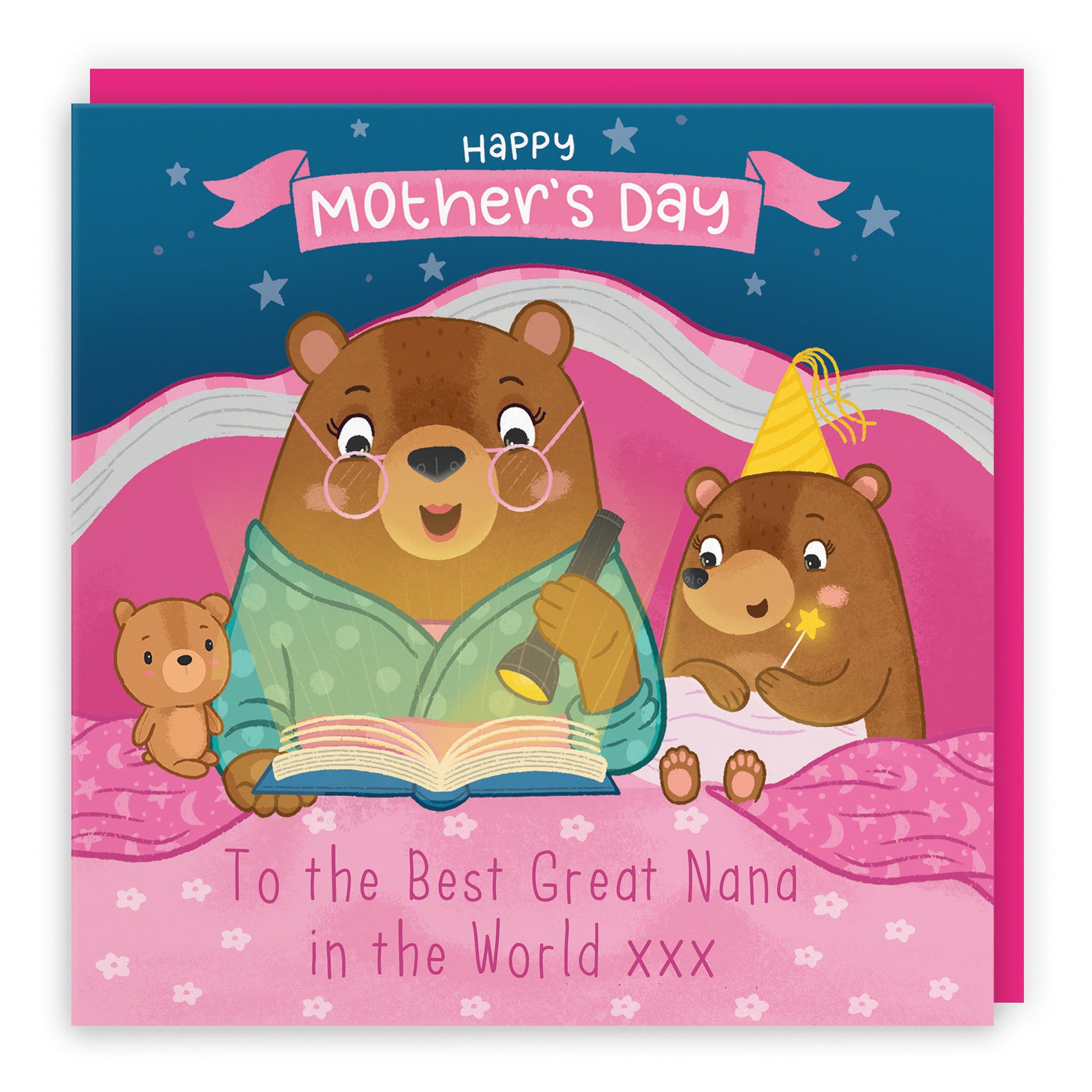 Hunts England - Great Nana Mother's Day Card - Bedtime Story For Girl Bear - Happy Mother's Day - To The Best Great Nana In The World xxx - Cute Bears Collection.