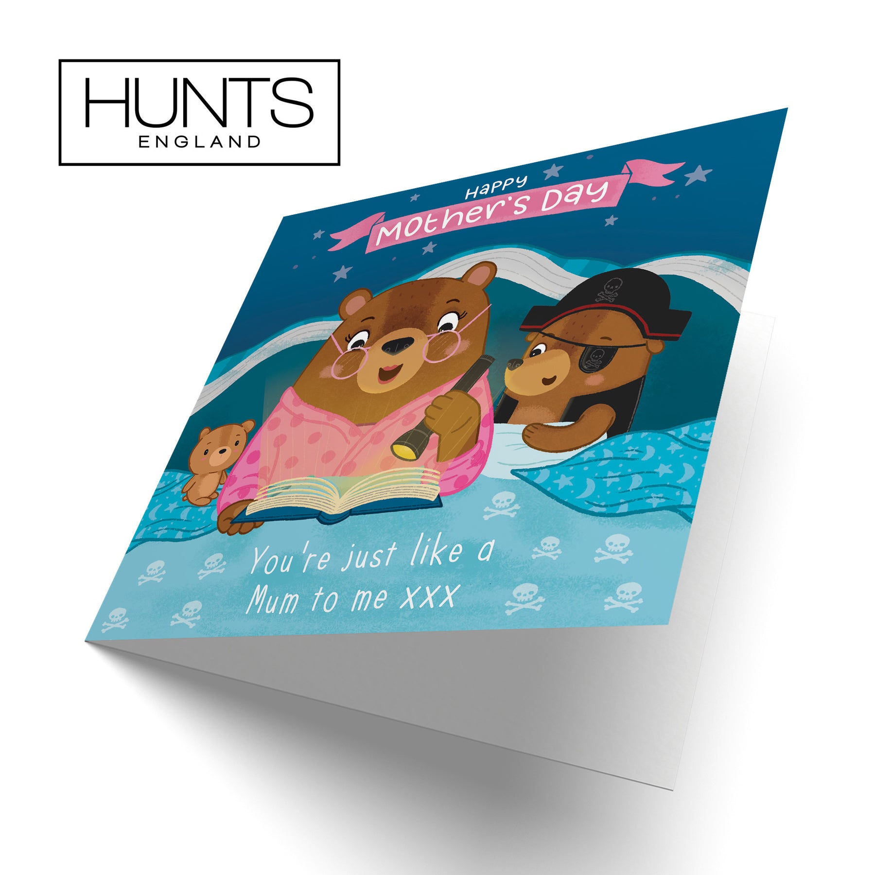 Hunts England - Like A Mum Mother's Day Card - Bedtime Story For Boy Bear - Happy Mother's Day - You’re Just Like A Mum To Me xxx - Cute Bears Collection.