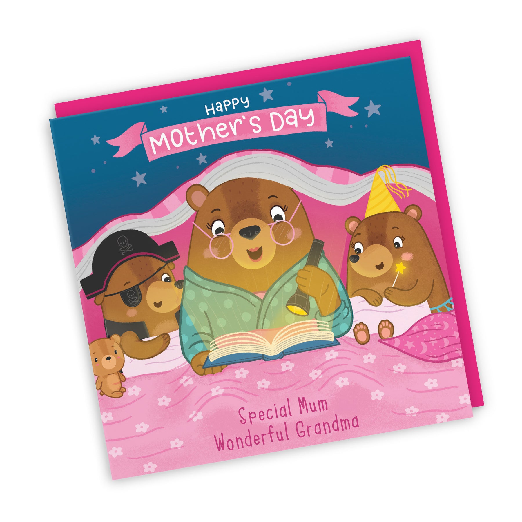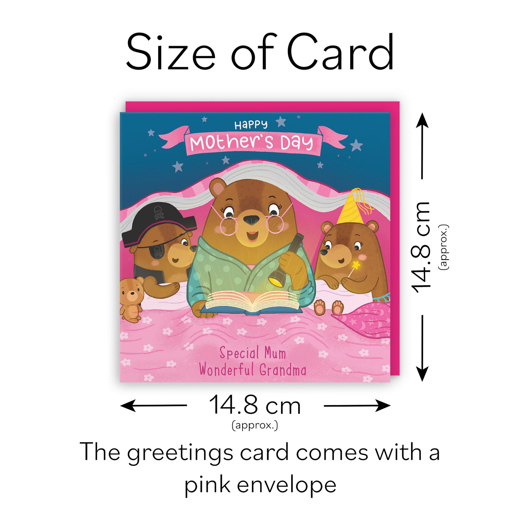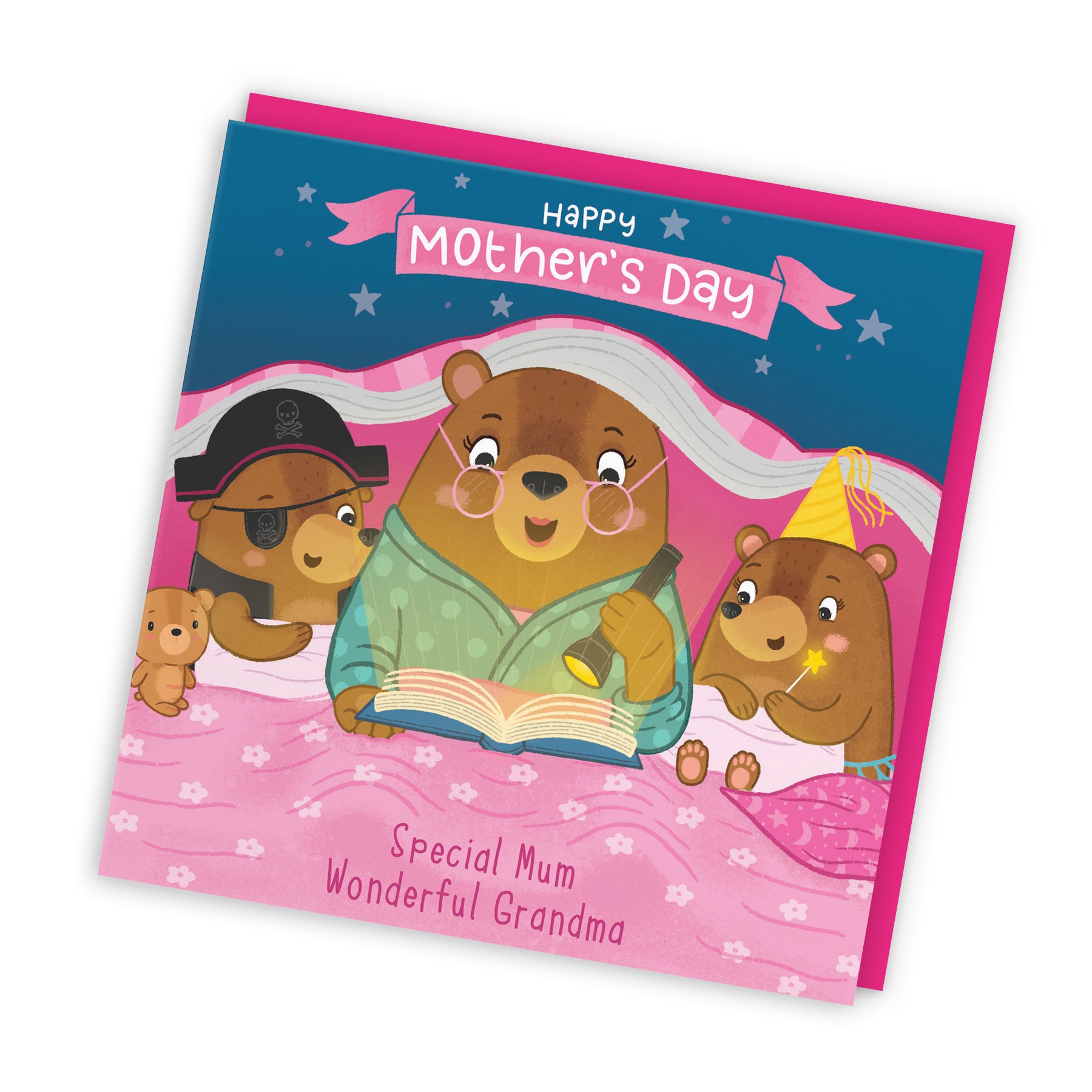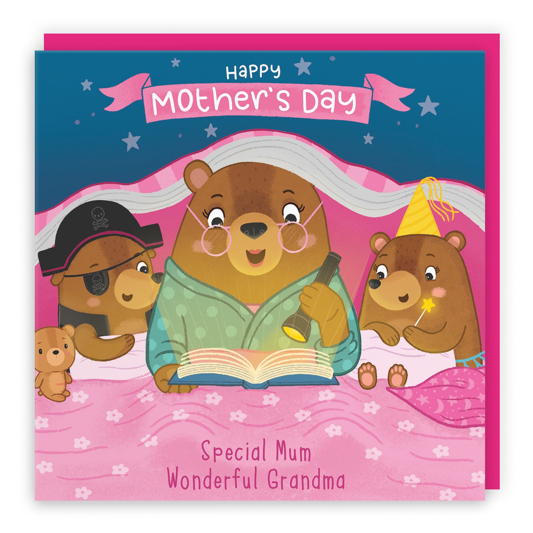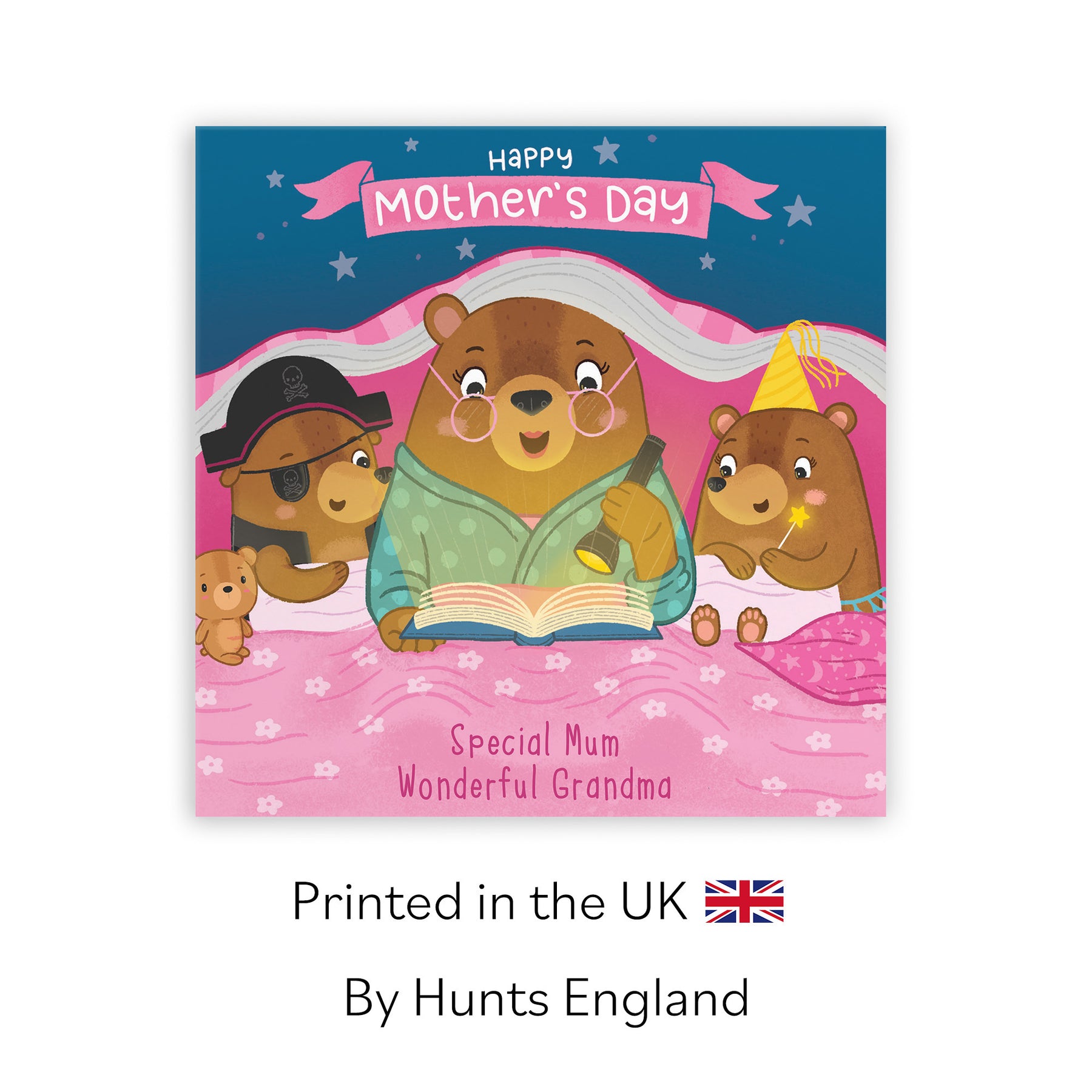 Hunts England - Mum And Grandma Combined Cute Mother's Day Card - Bedtime Story For Boy & Girl Bear - Happy Mother's Day - Special Mum - Wonderful Grandma - Cute Bears Collection.