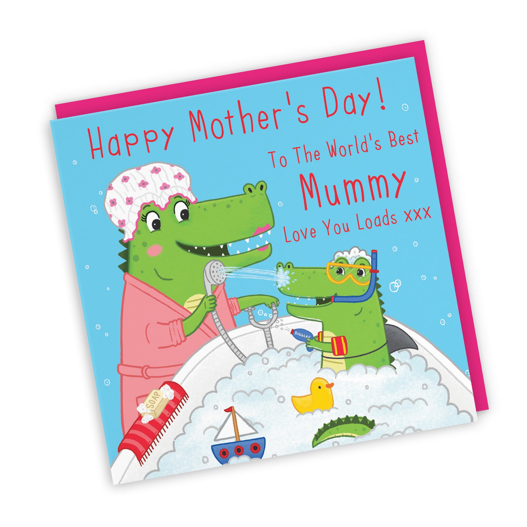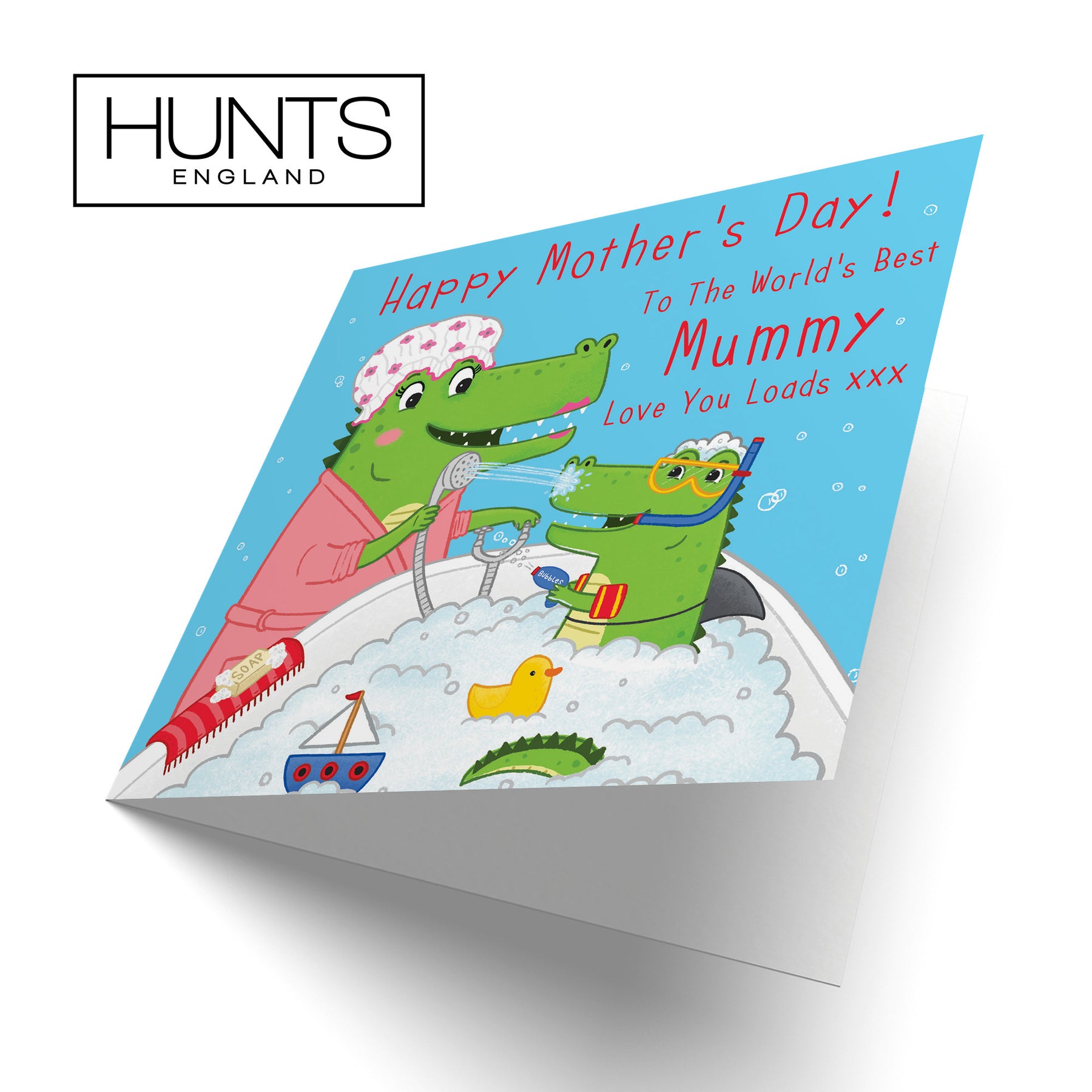 Hunts England - Mummy Mother's Day Card - Crocodile Bath Time - Happy Mother's Day! - To The World's Best Mummy - Love You Loads xxx - Imagination Collection.