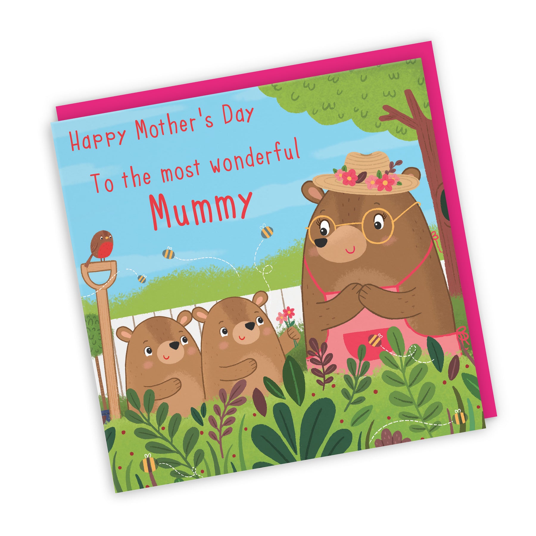Hunts England - Mummy Mother's Day Card From Two Children - Cute Gardening Bears - Happy Mother's Day - To The Most Wonderful Mummy - Cute Bears Collection.