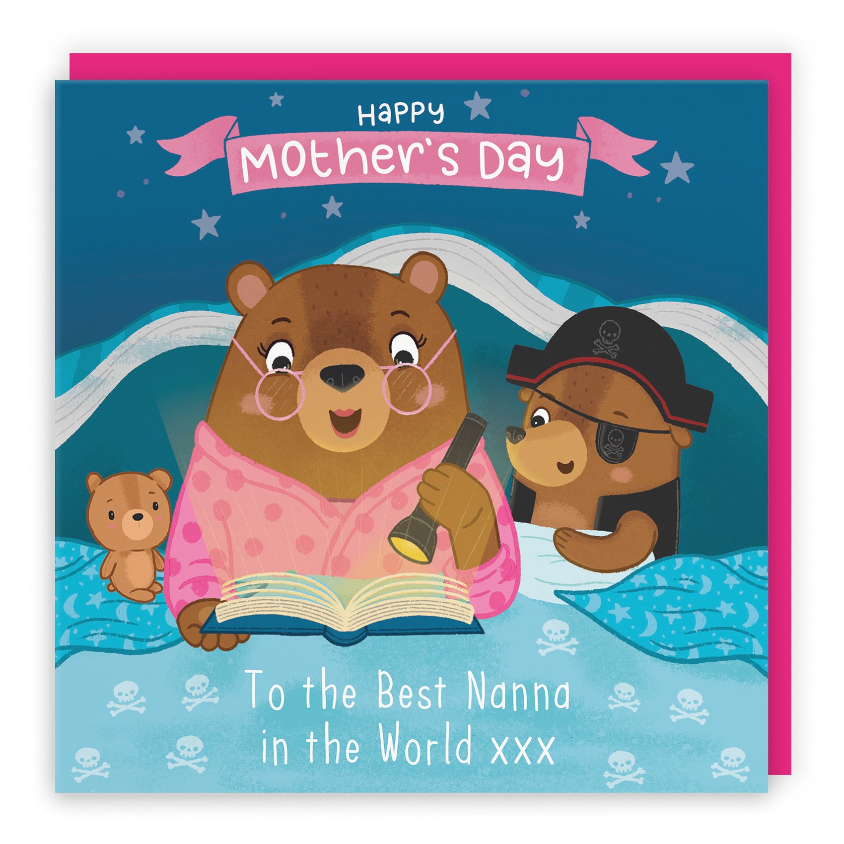 Hunts England - Nanna Mother's Day Card - Bedtime Story For Boy Bear - Happy Mother's Day - To The Best Nanna In The World xxx - Cute Bears Collection.