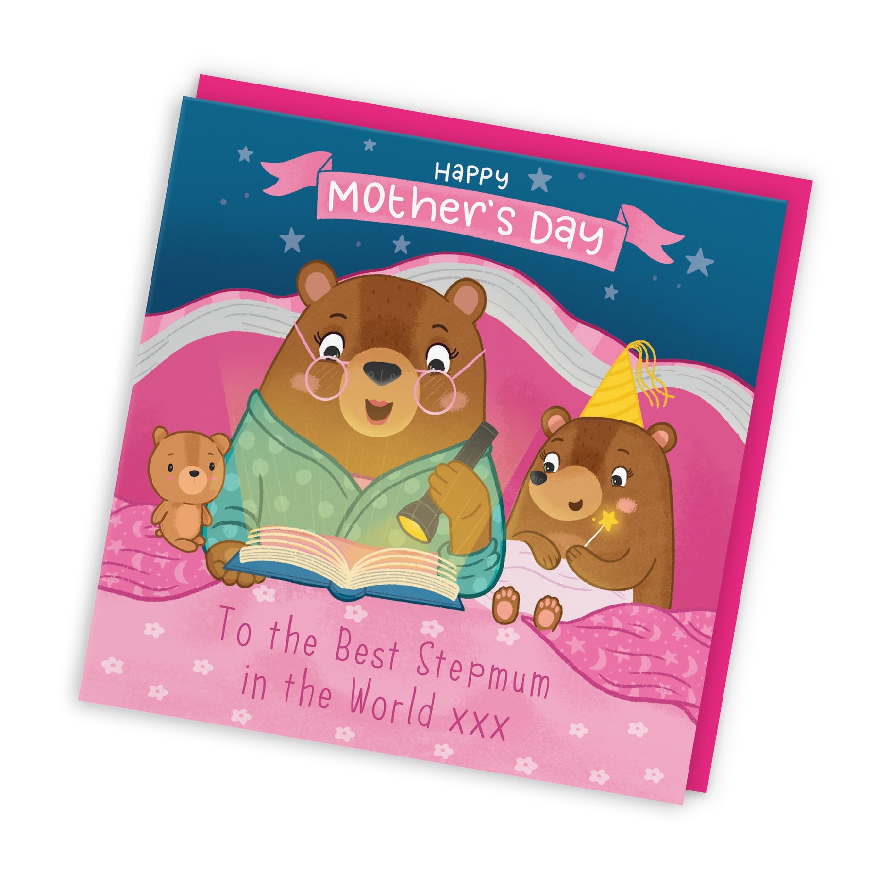 Hunts England - Stepmum Mother's Day Card - Bedtime Story For Girl Bear - Happy Mother's Day - To The Best Stepmum In The World xxx - Cute Bears Collection.