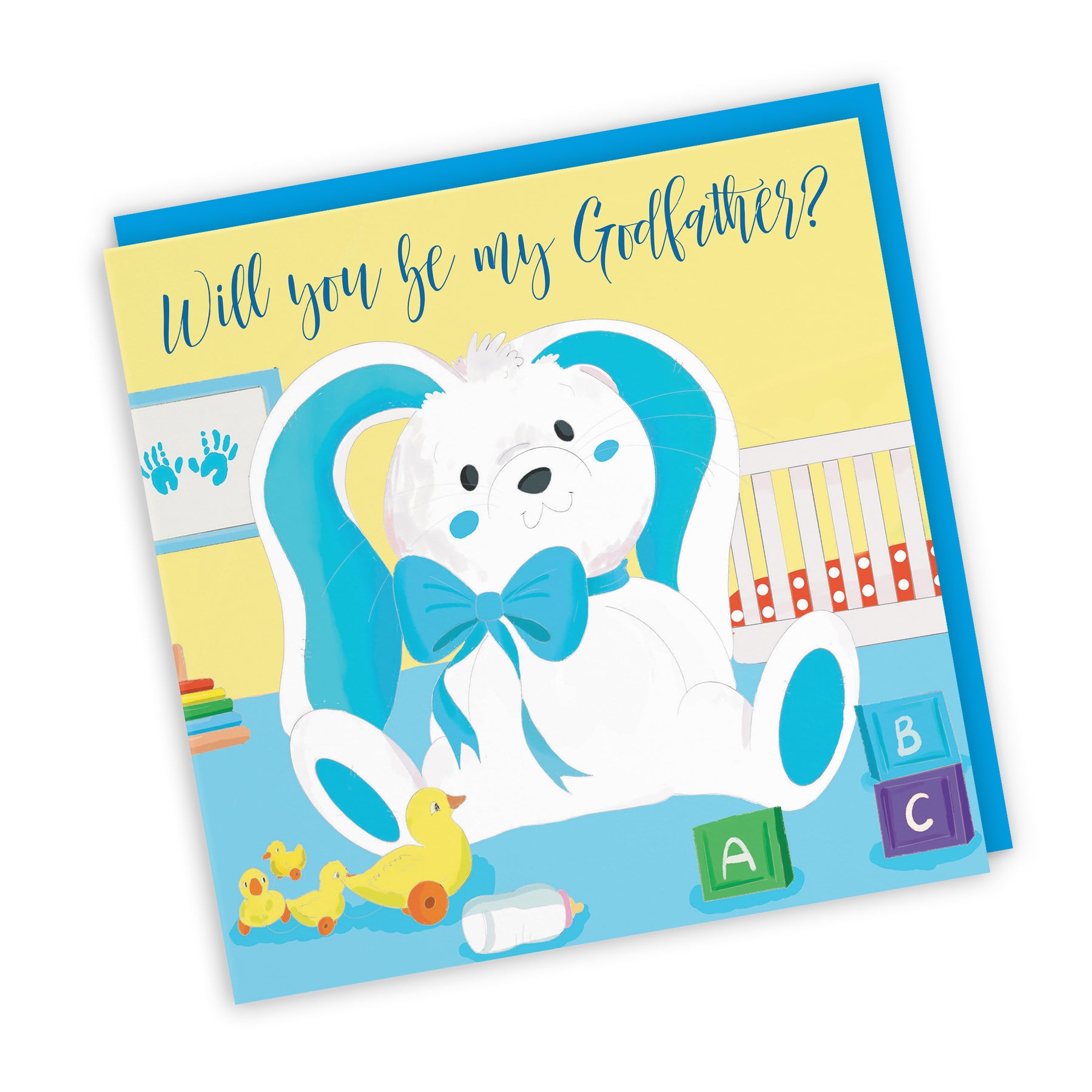 Hunts England - Will You Be My Godfather Cute Proposal Card - Christening / Baptism - Newborn - Blue Rabbit - Countryside Collection.
