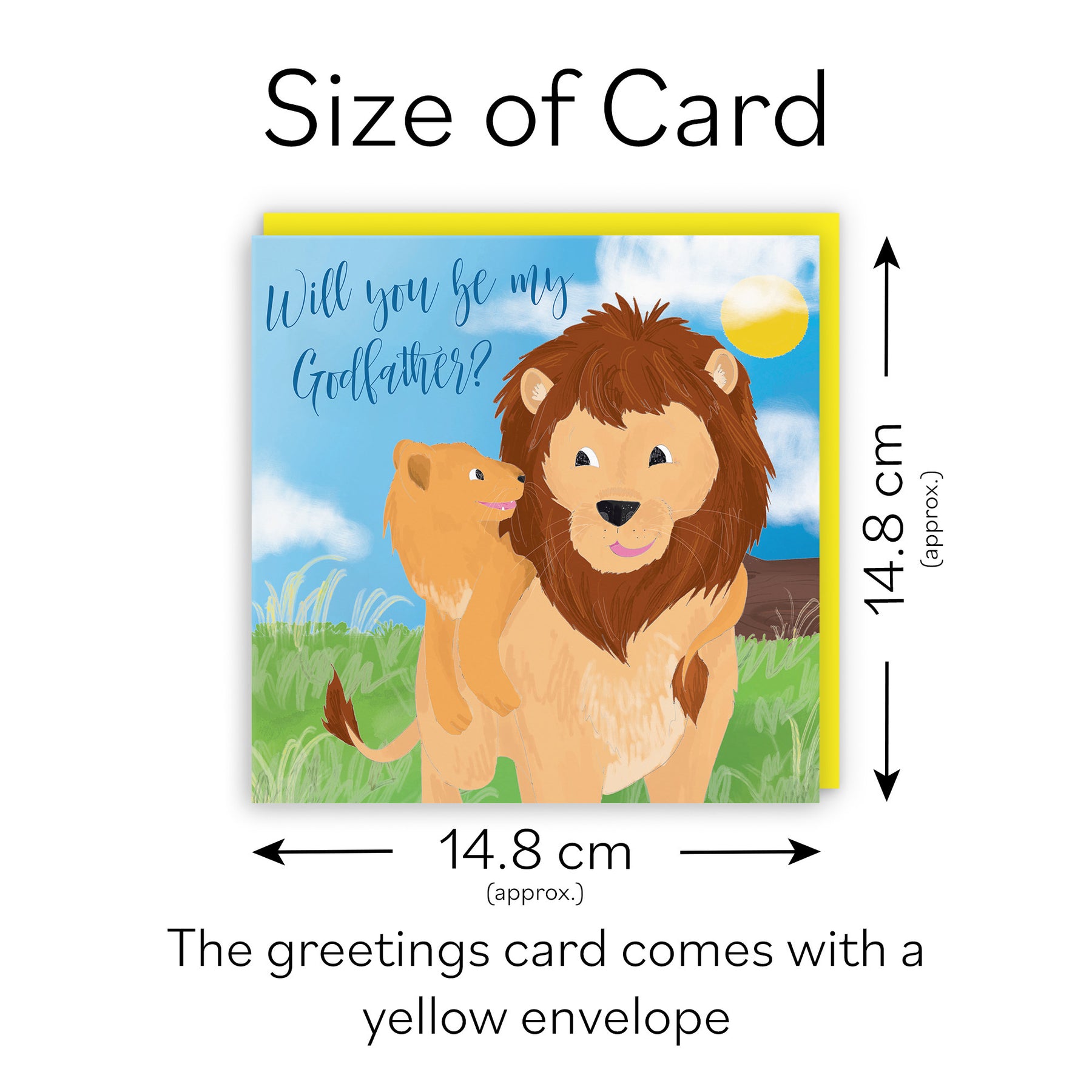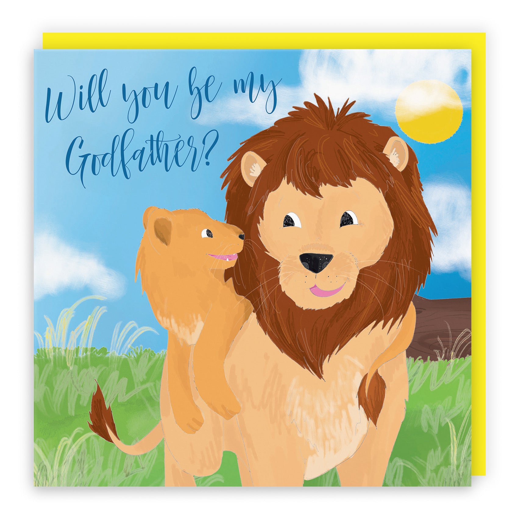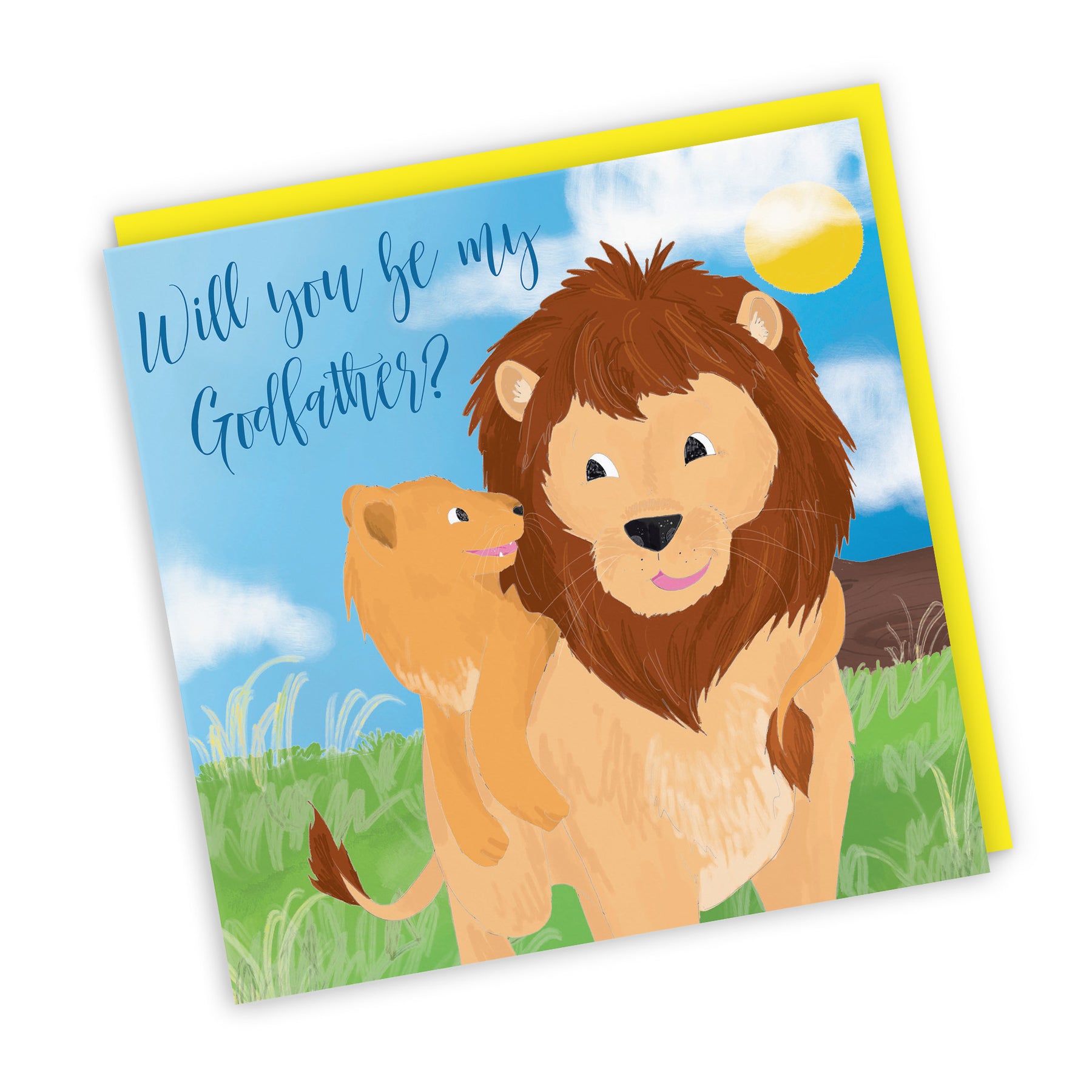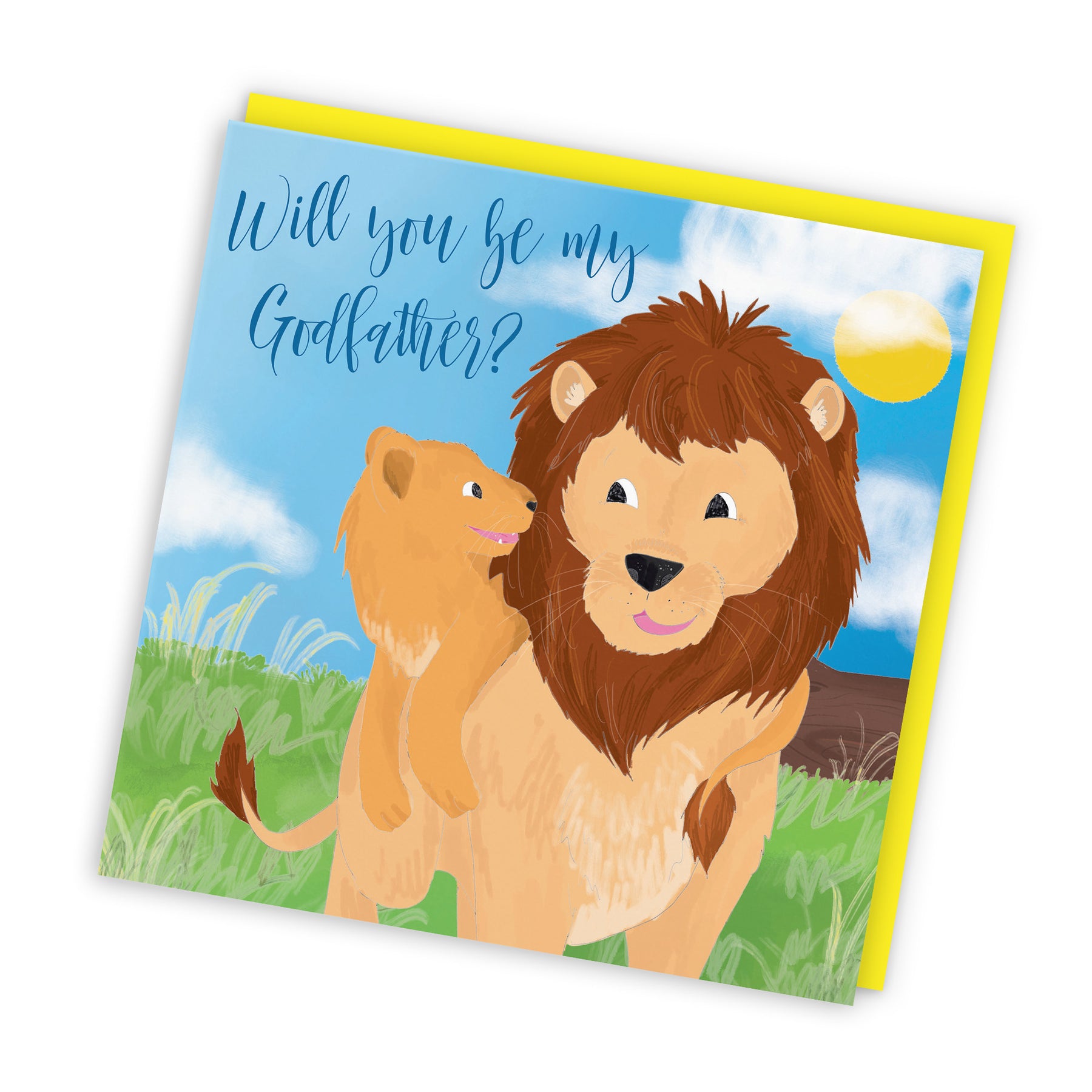 Hunts England - Will You Be My Godfather Proposal Card - Christening / Baptism - Newborn - Cute Lions - Jungle Collection.