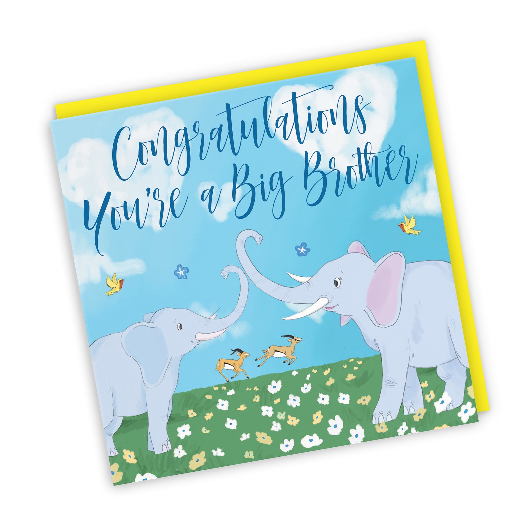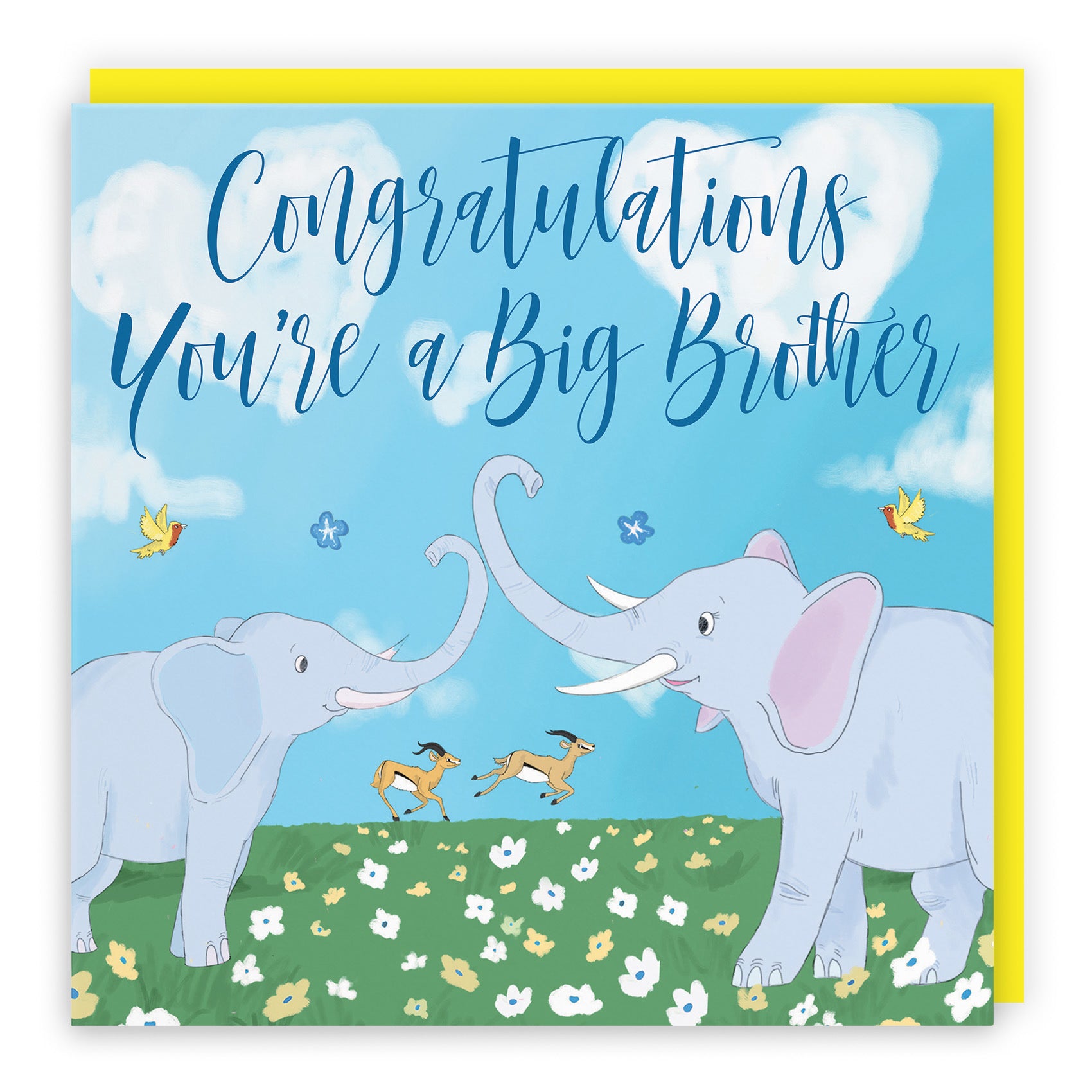 Hunts England - Congratulations You're A Big Brother Cute New Baby Congratulations Card - New Sibling Card - Big Brother - Two Elephants - Cute Animals Collection.