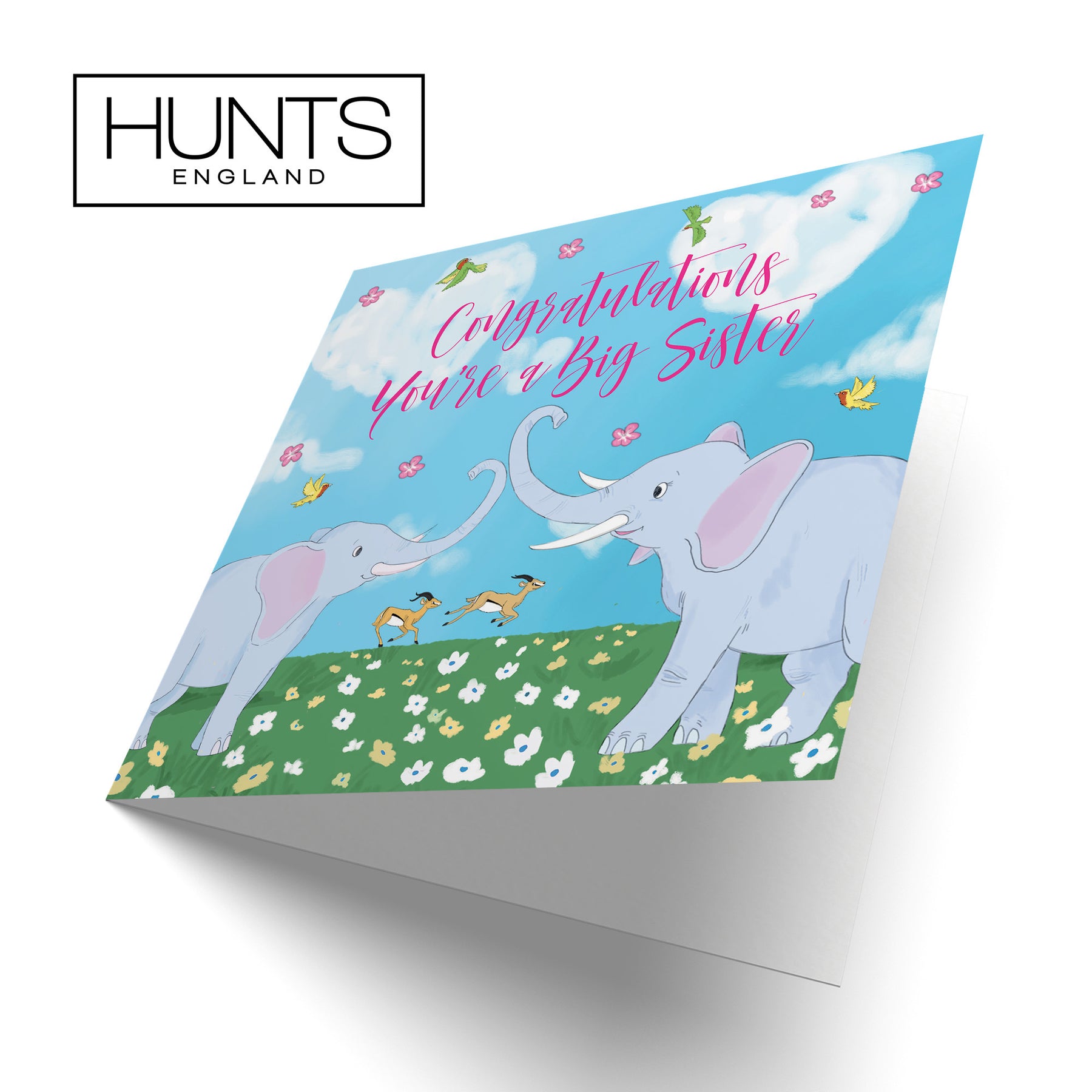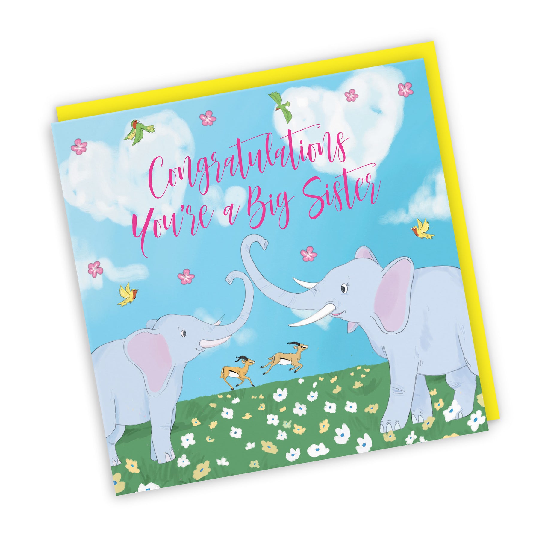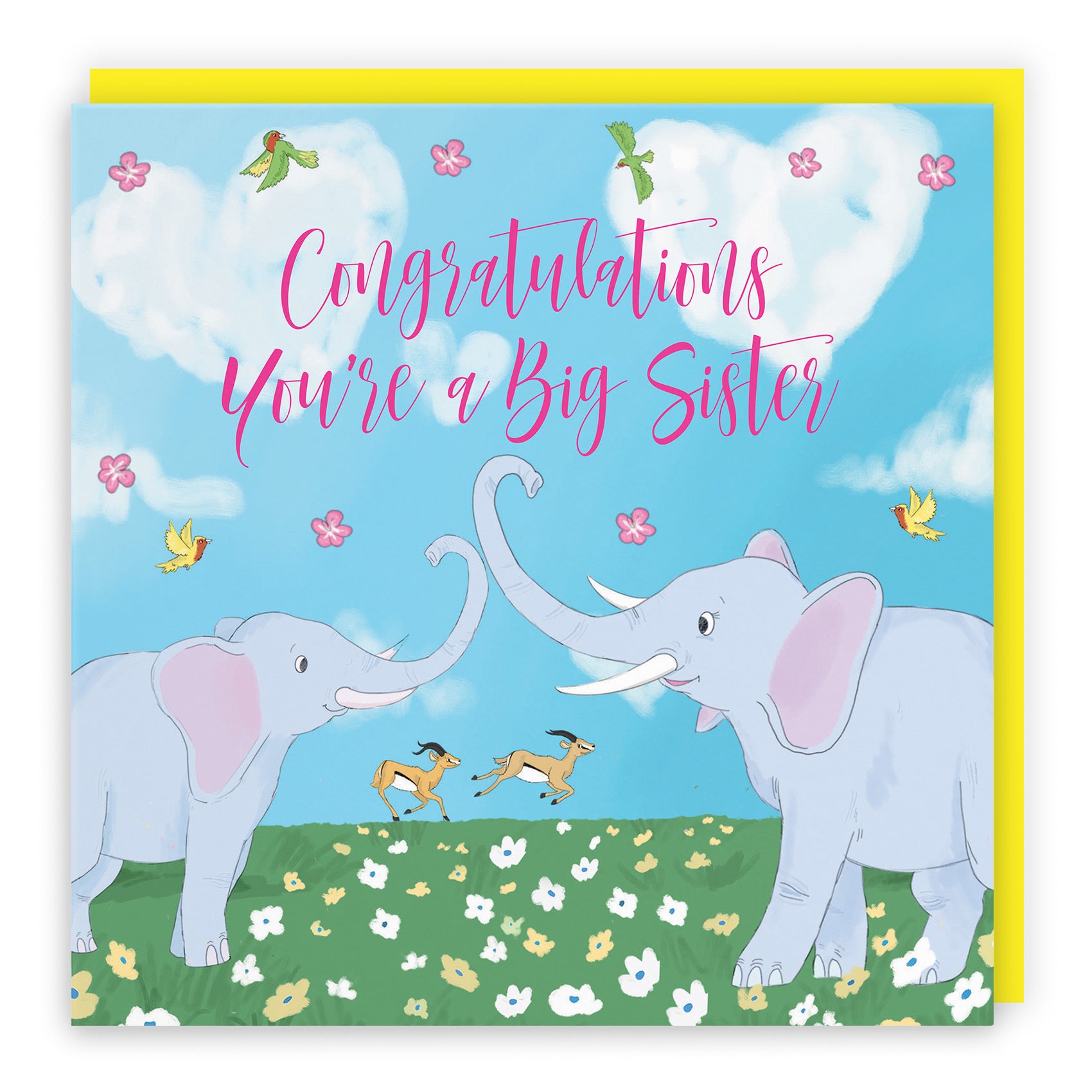 Hunts England - Congratulations You're A Big Sister Cute New Baby Congratulations Card - New Sibling Card - Big Sister - Two Elephants - Cute Animals Collection.