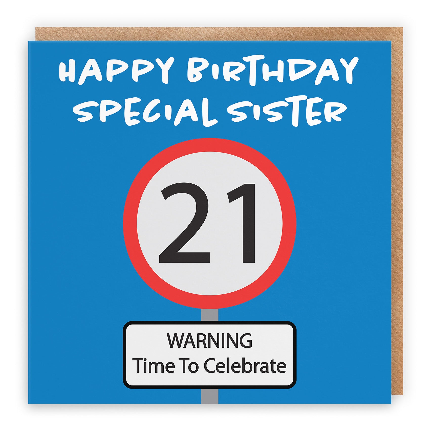 Hunts England - Sister 21st Birthday Card - Happy Birthday - Special Sister - Warning Time To Celebrate - Road Sign Collection.