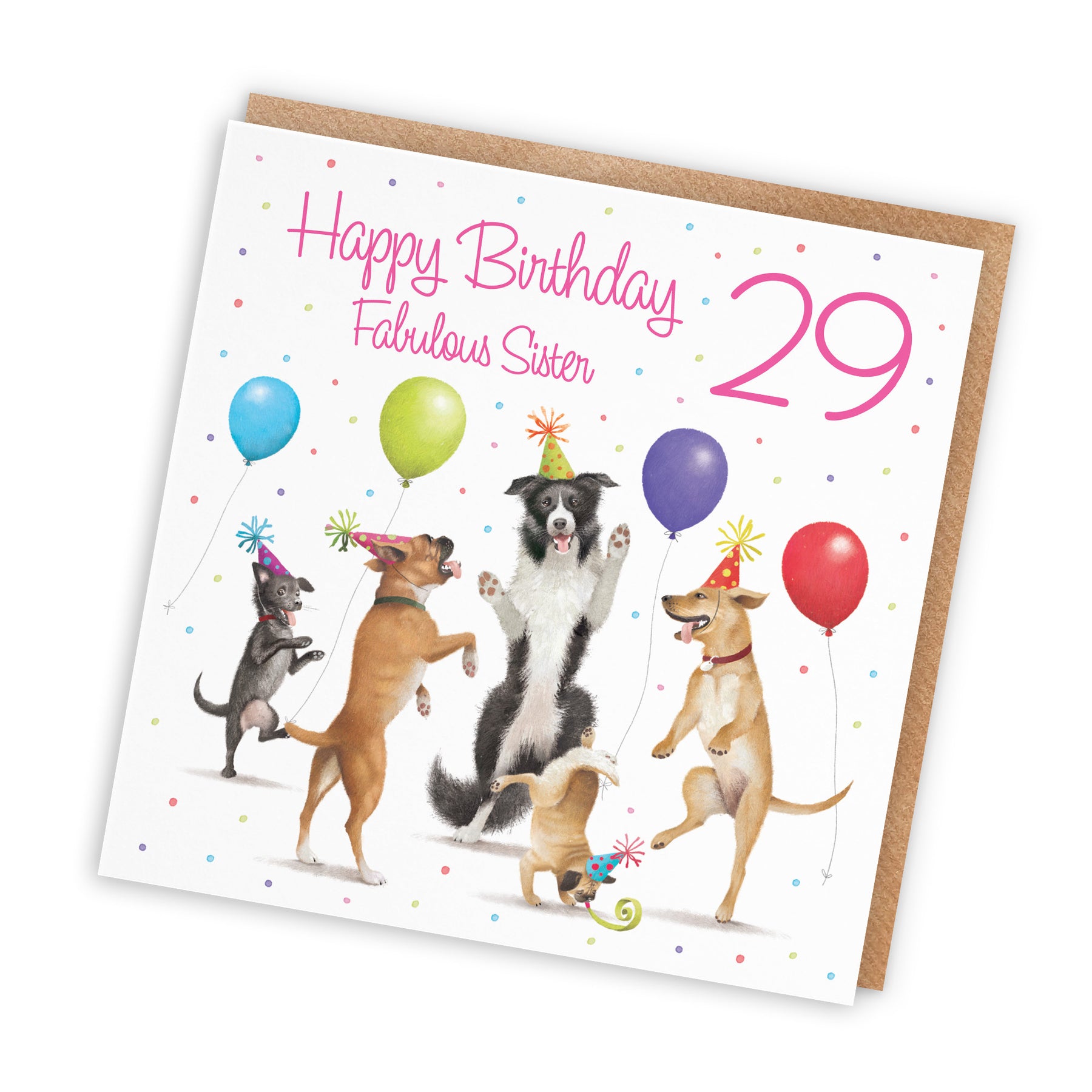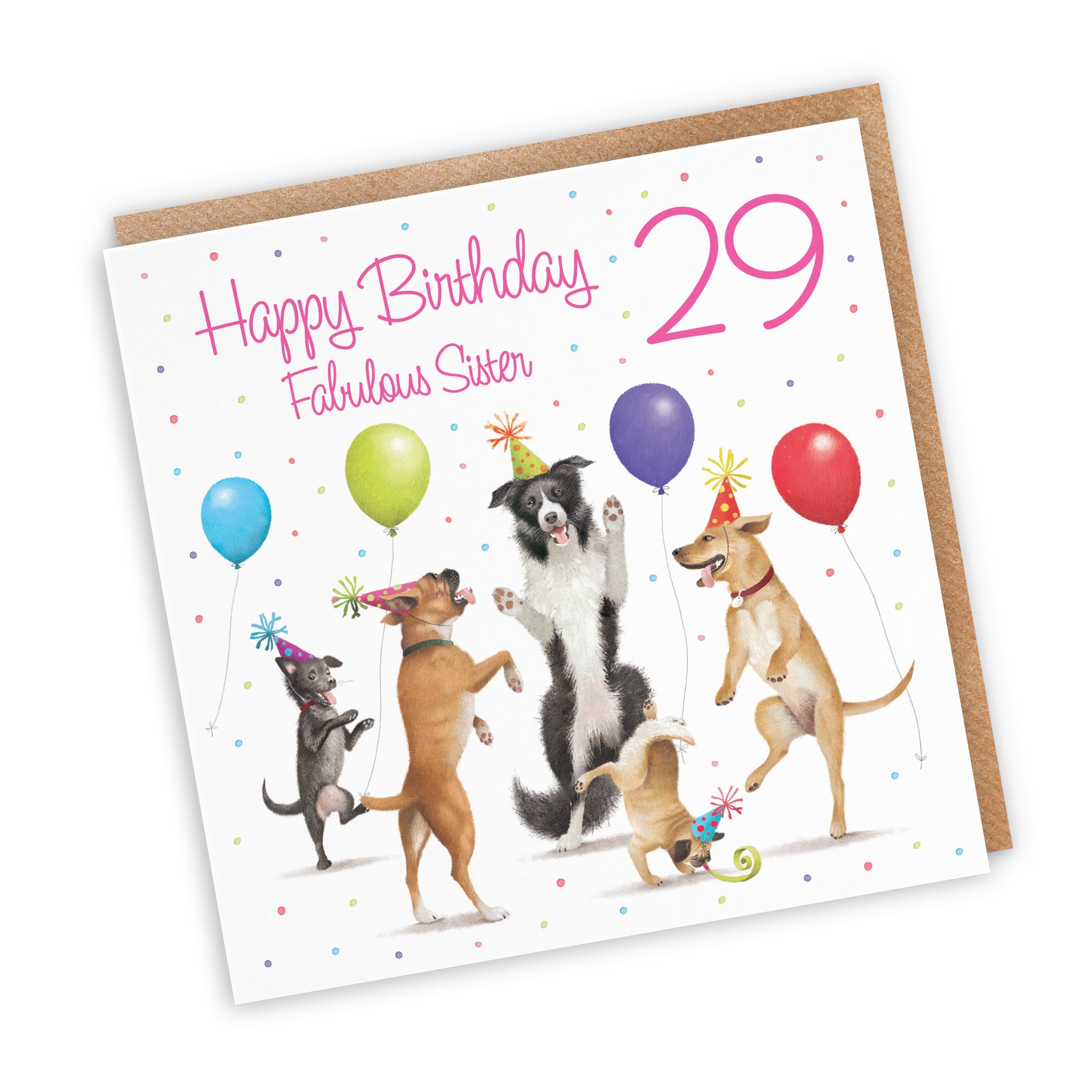 Hunts England - 29th Sister Birthday Card - Dancing Dogs - Happy Birthday - Fabulous Sister - Age 29 - Women's 29th Card - Milo's Gallery Collection.