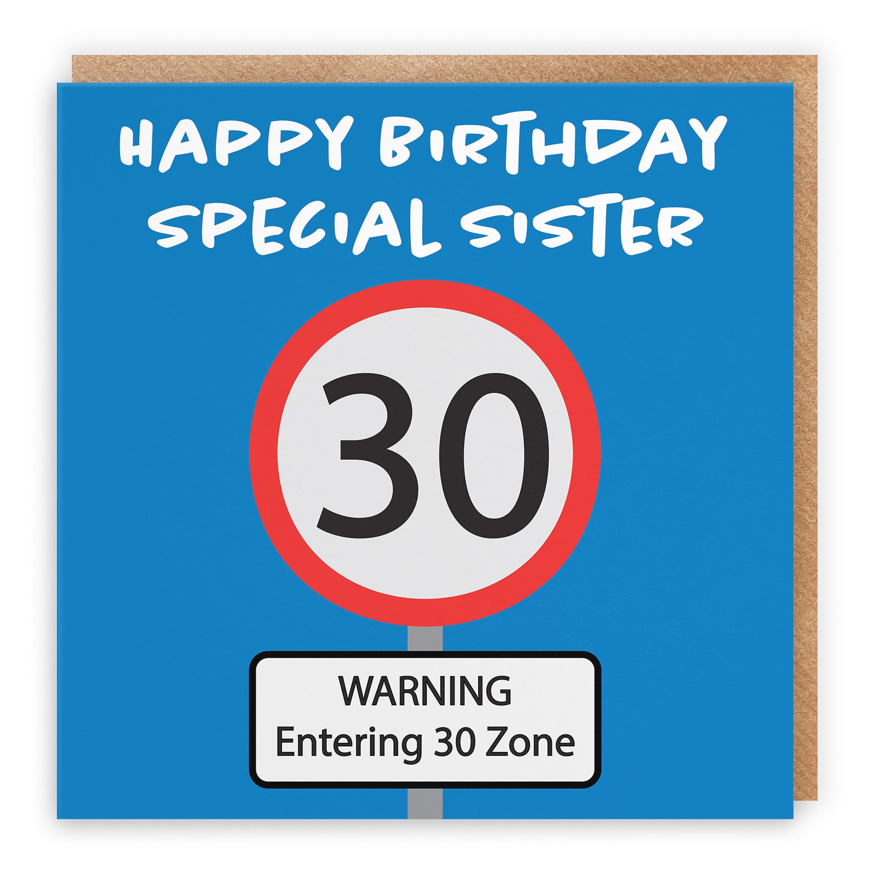 Hunts England - Sister 30th Birthday Card - Happy Birthday - Special Sister - Warning Entering 30 Zone - Road Sign Collection.