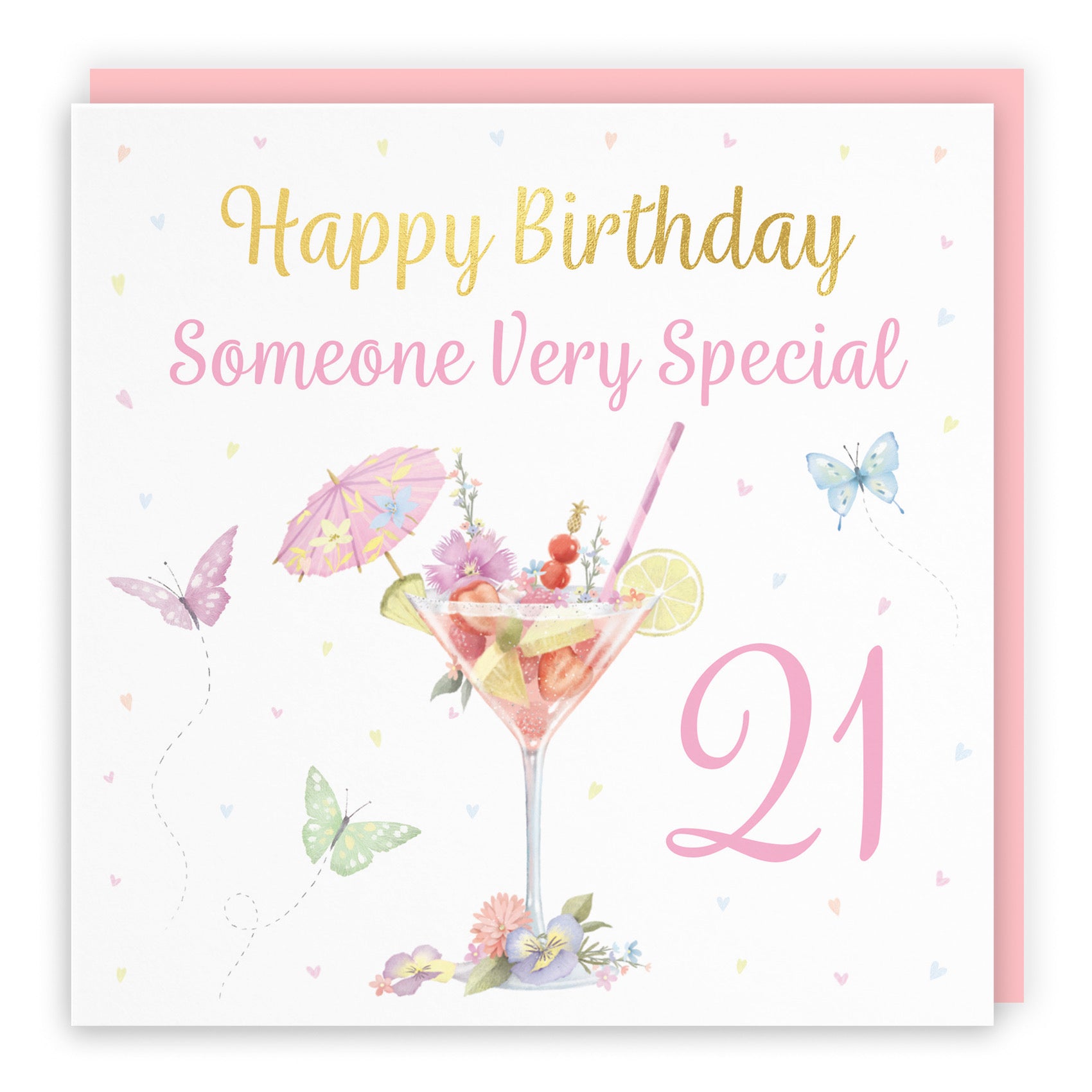 Hunts England - 21st Someone Very Special Pink Cocktail And Butterflies Female Birthday Card - Gold Foil - Milo's Gallery - Age 21 Drinks, Flowers, Hearts Birthday Card.