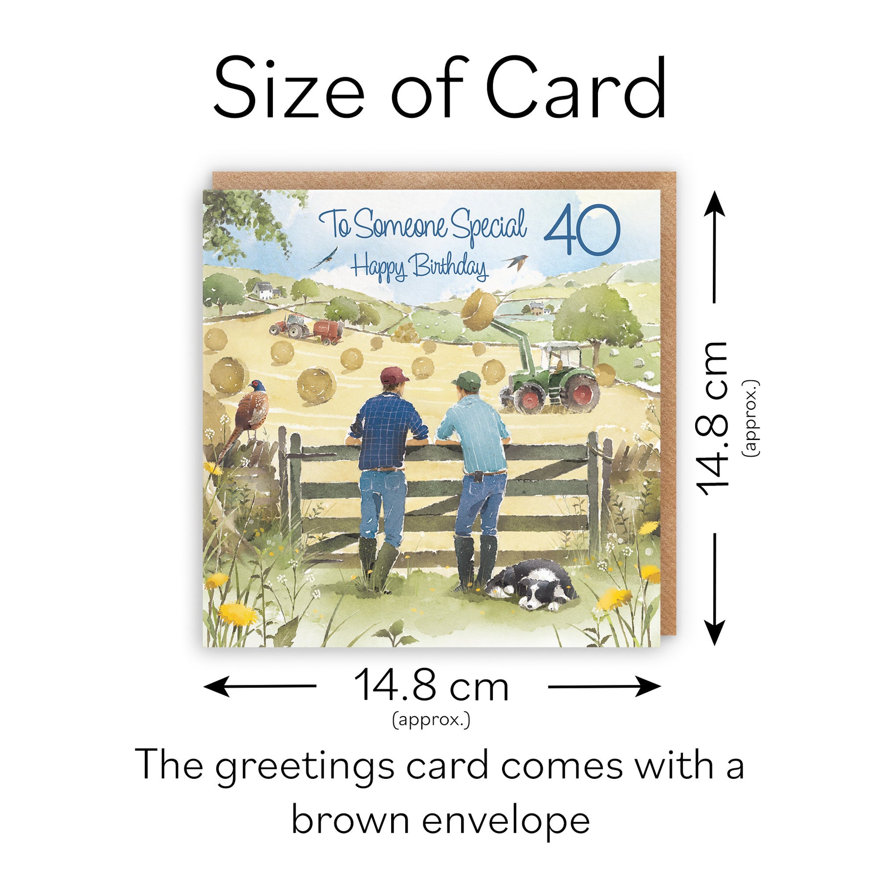 Hunts England - 40th Someone Special Farmers Birthday Card For Him - Age 40 Male Card For Someone Special - 'Haymaking' - Farmers And Tractors - Milo's Gallery Collection - Age Forty.