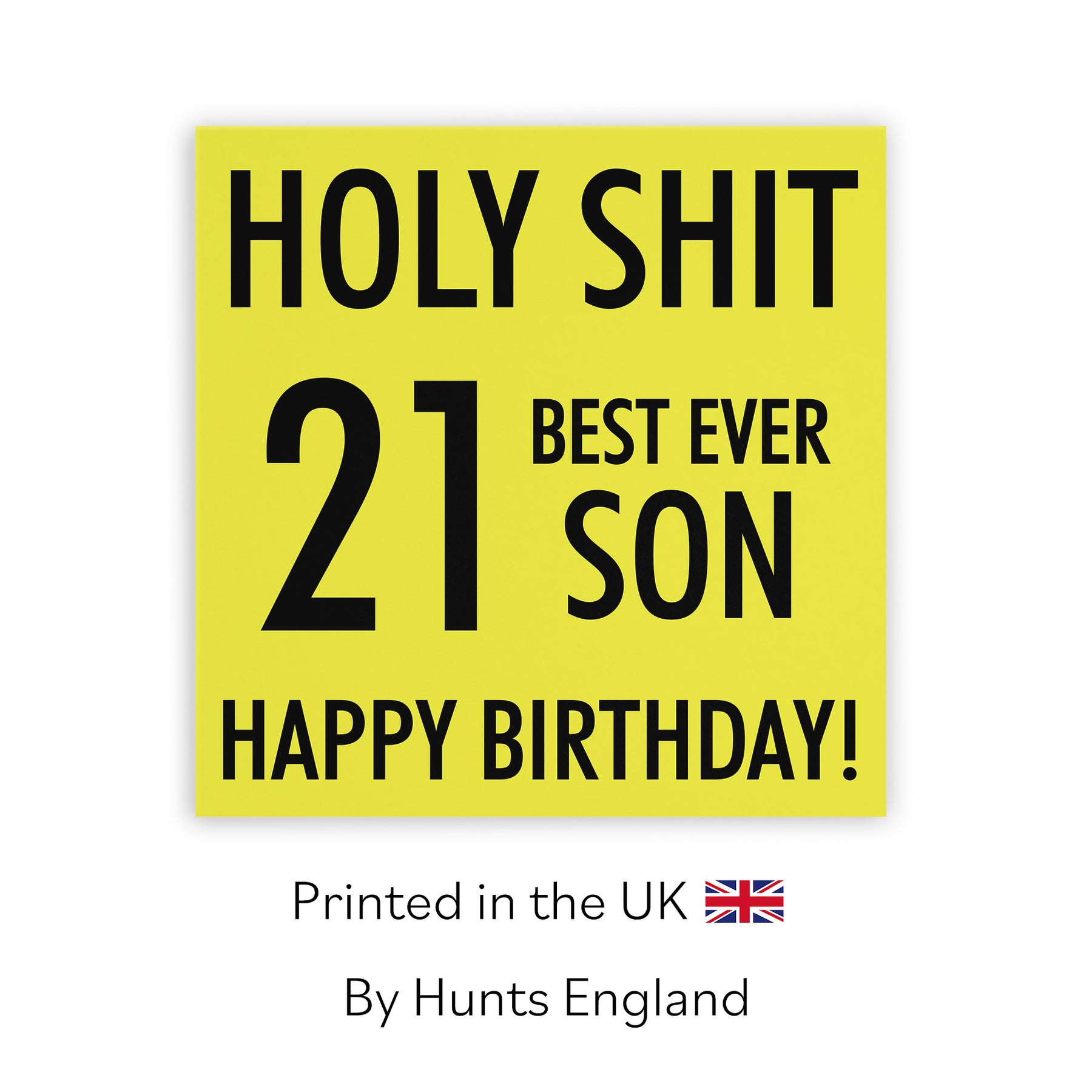 Hunts England - Son 21st Birthday Card - 'Holy Shit' - '21 Best Ever Son' - 'Happy Birthday!'.
