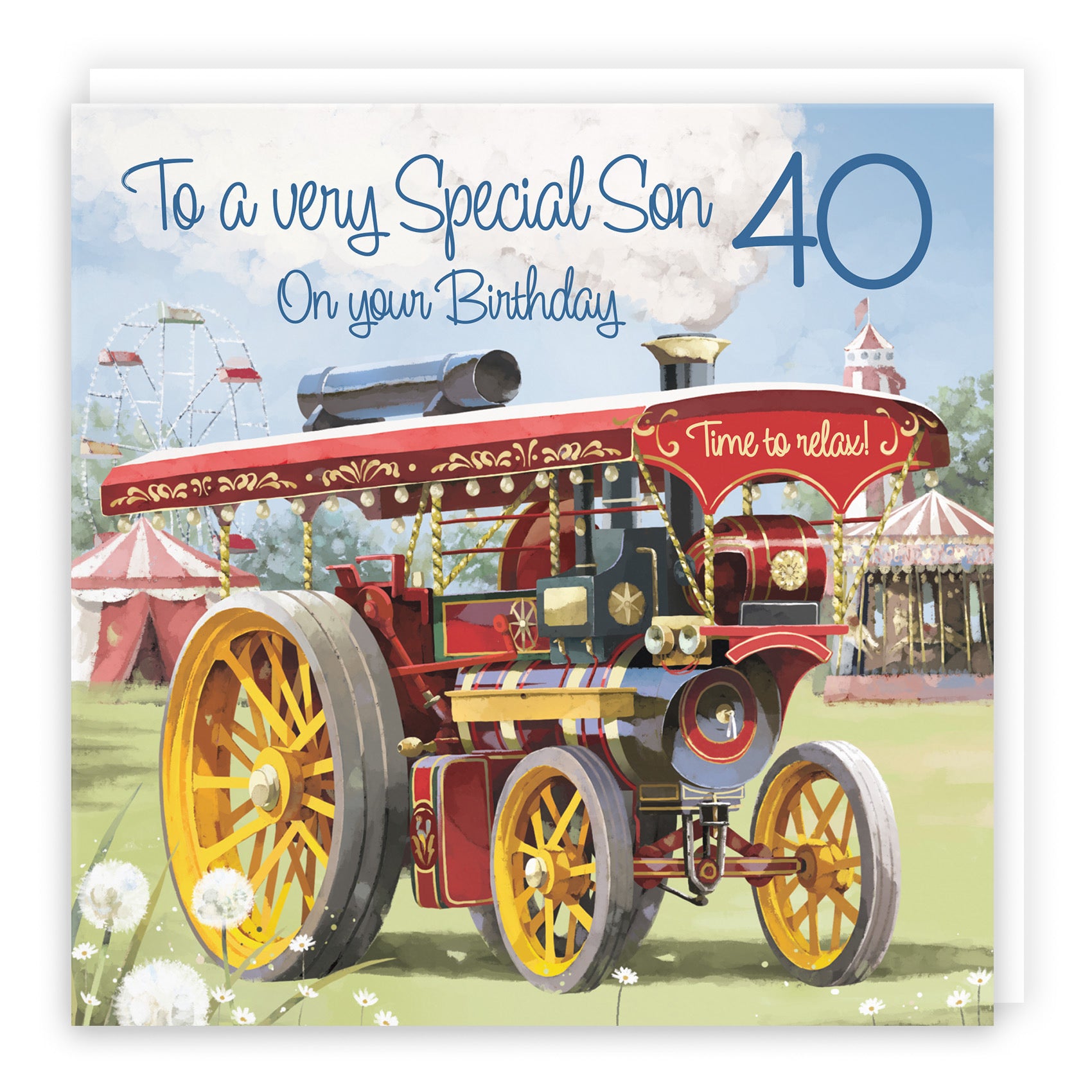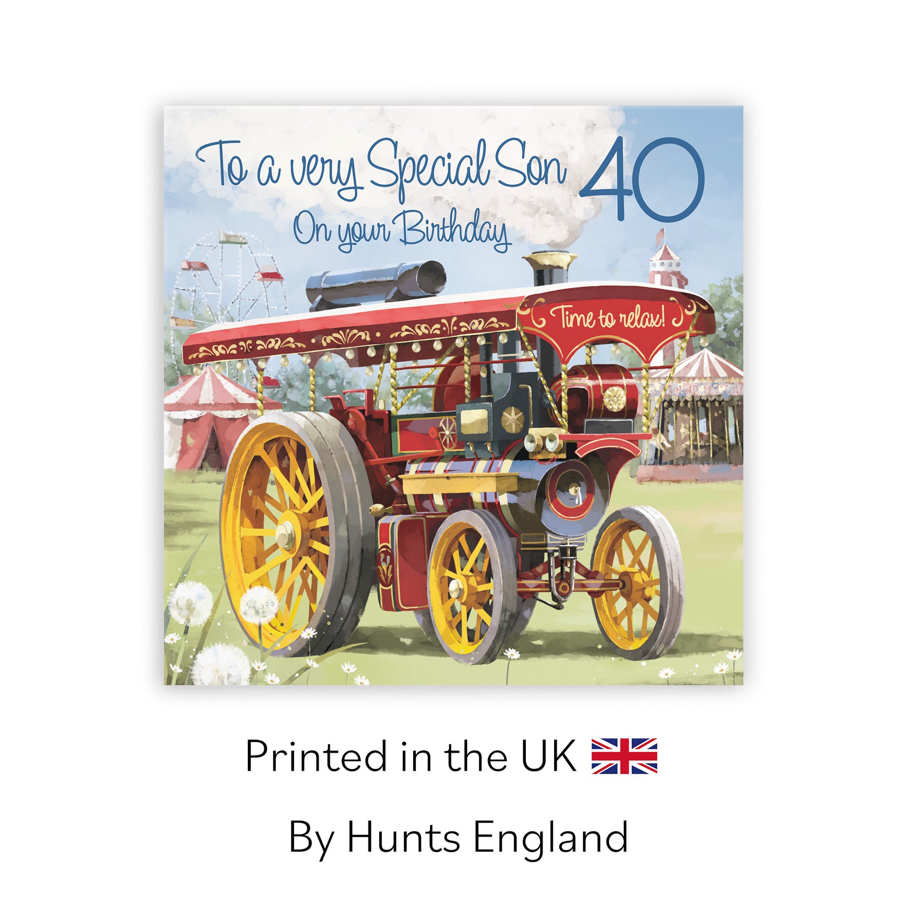 Hunts England - 40th Son Traction Engine Birthday Card - Age 40 Card For Son - Steam Tractor - Milo's Gallery Collection - Age Forty Birthday - 40 Year Old.