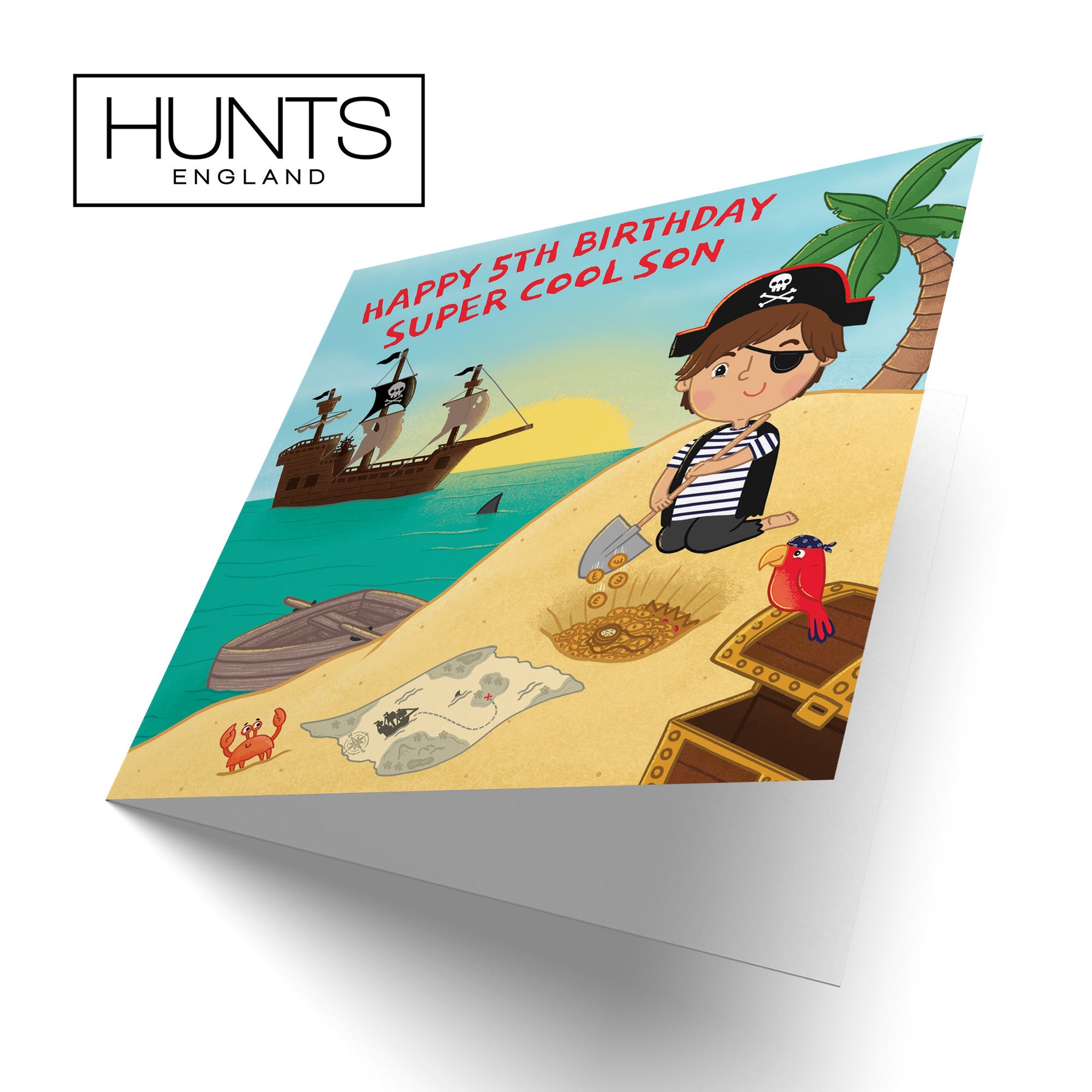 Hunts England - Son 5th Pirate Birthday Card - Happy 5th Birthday - Super Cool Son - Treasure Map - Imagination Collection.