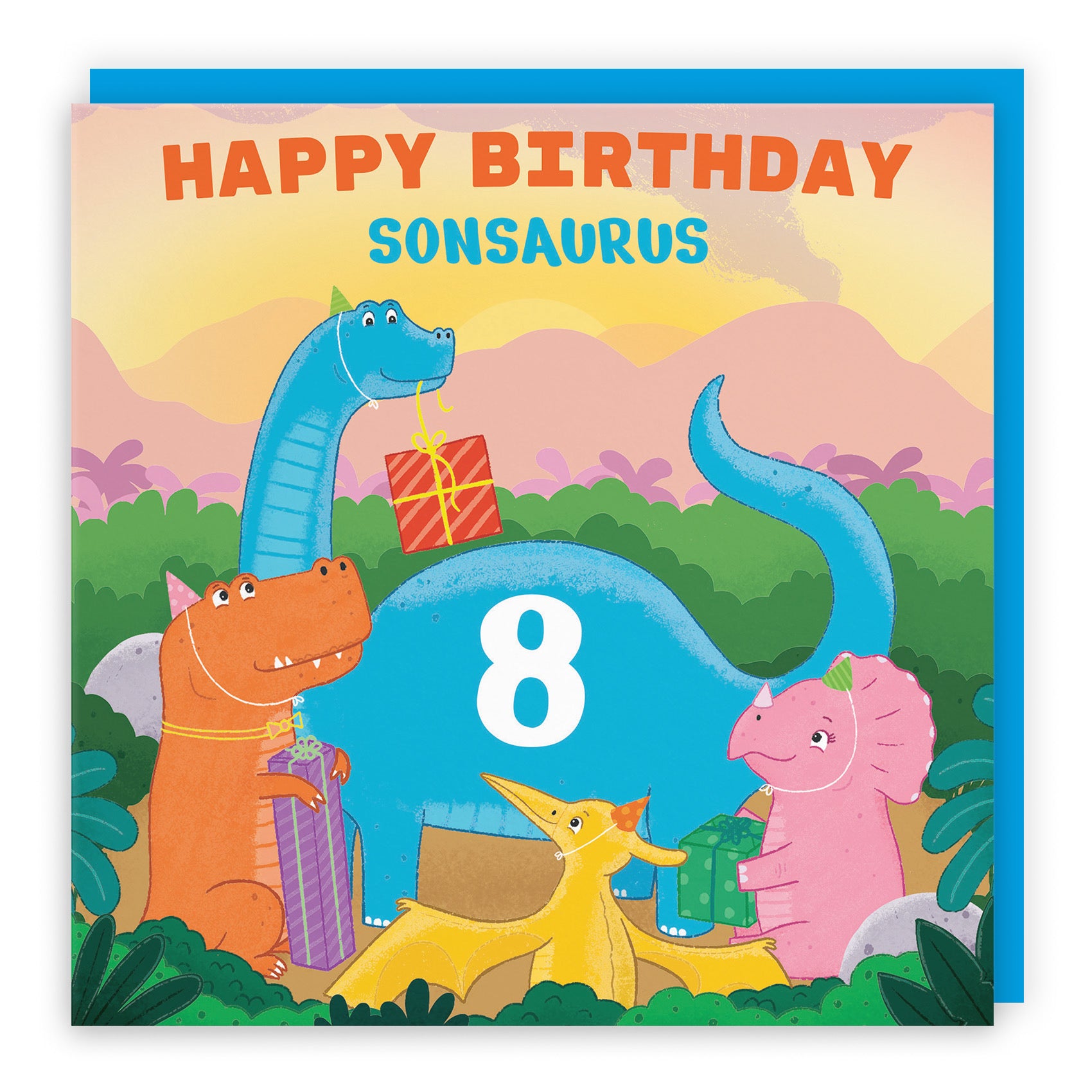Hunts England - Son 8th Birthday Dinosaur Party Card - Happy Birthday - Sonsaurus - 8 - Imagination Collection.