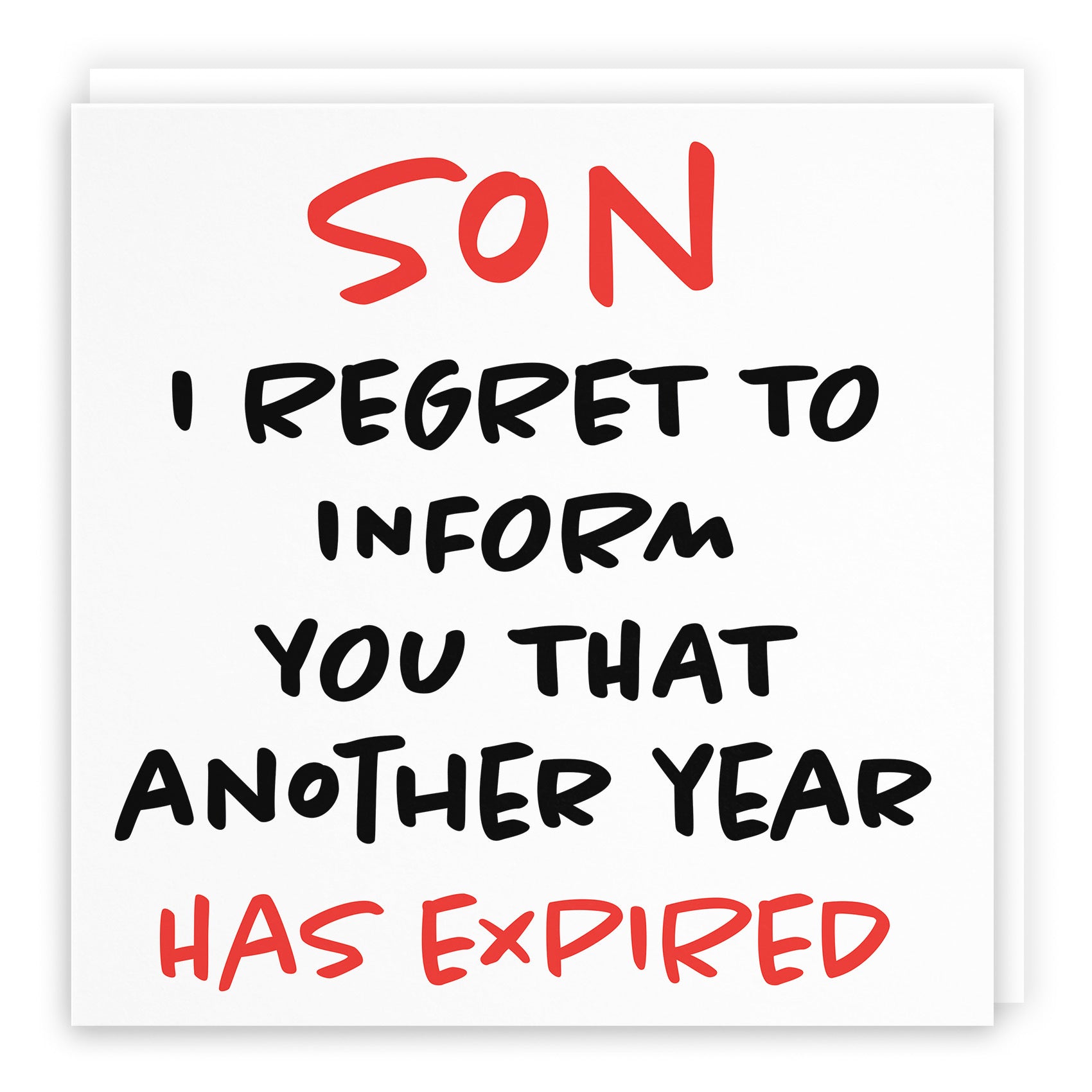 Hunts England - Son Humorous Birthday Card - Son - I Regret To Inform You That Another Year Has Expired - Retro Collection.