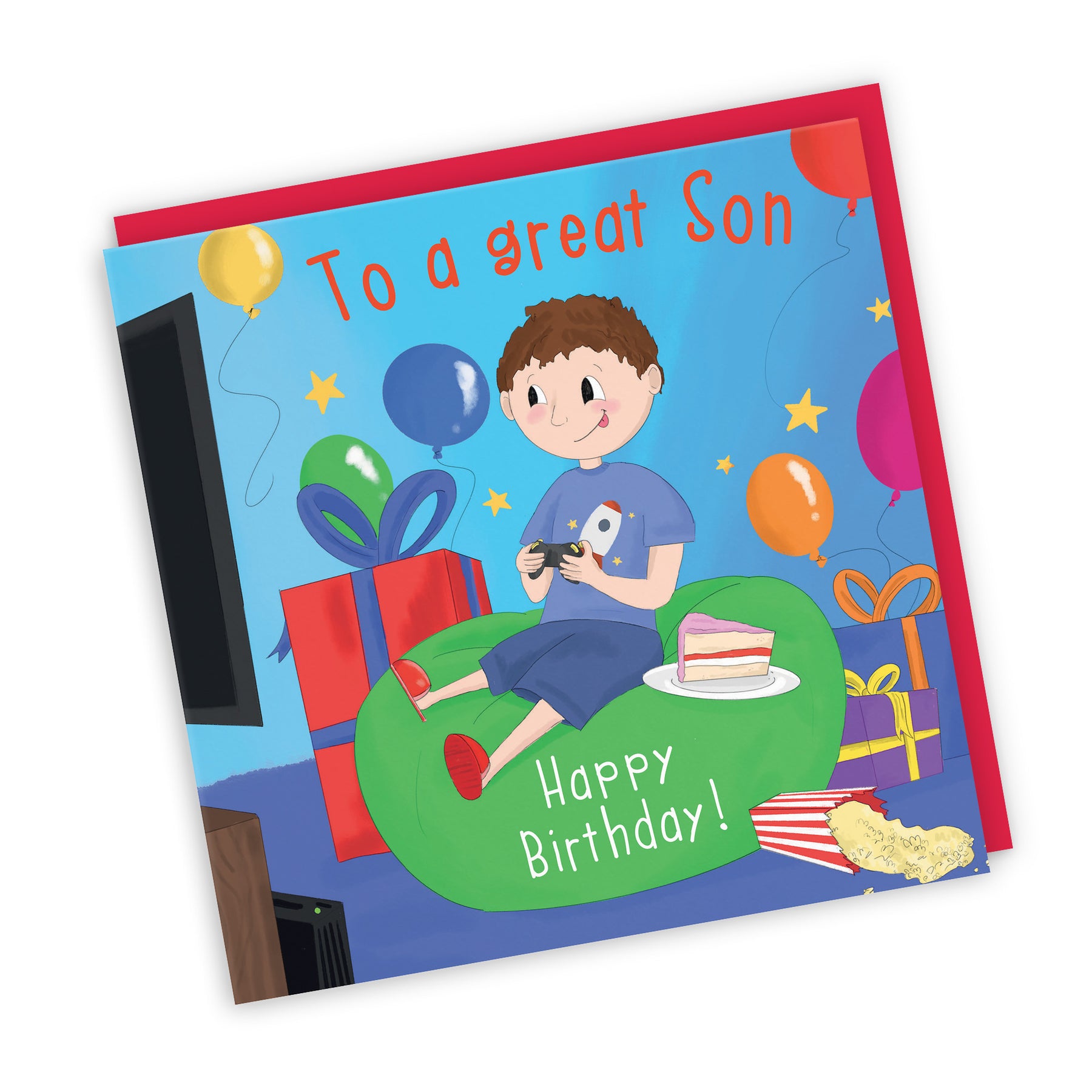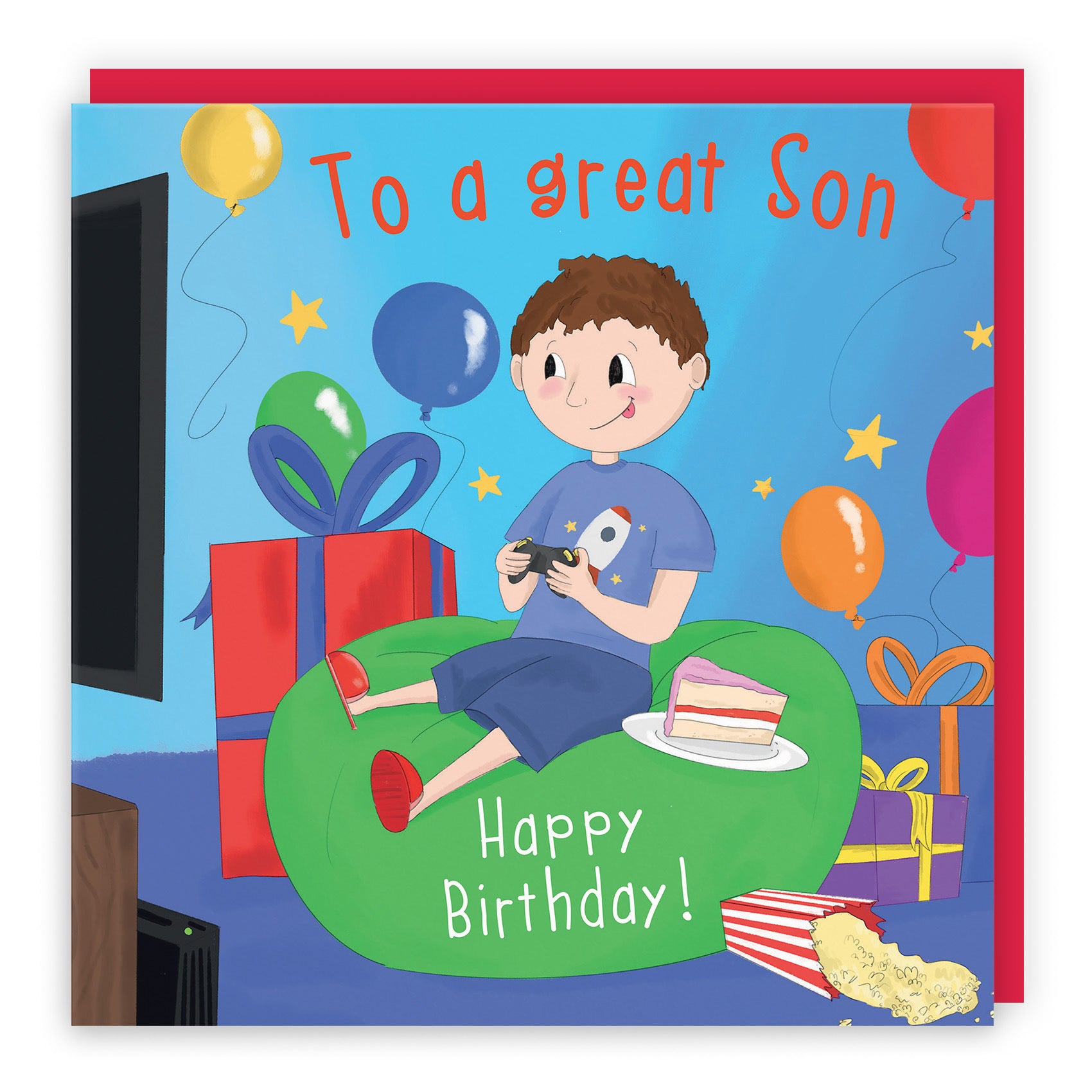 Hunts England - Son Children's Birthday Gaming Card - To A Great Son - Happy Birthday! - Kids TV & Games Console Card - Adventurers Collection.