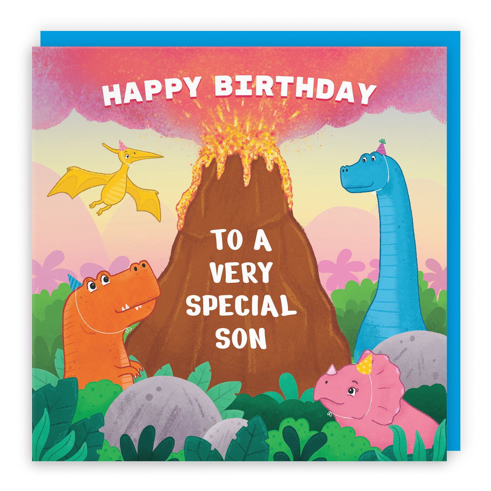 Hunts England - Son Dinosaur Children's Birthday Card - Happy Birthday - To A Very Special Son - Dinosaurs & Volcano - Imagination Collection.