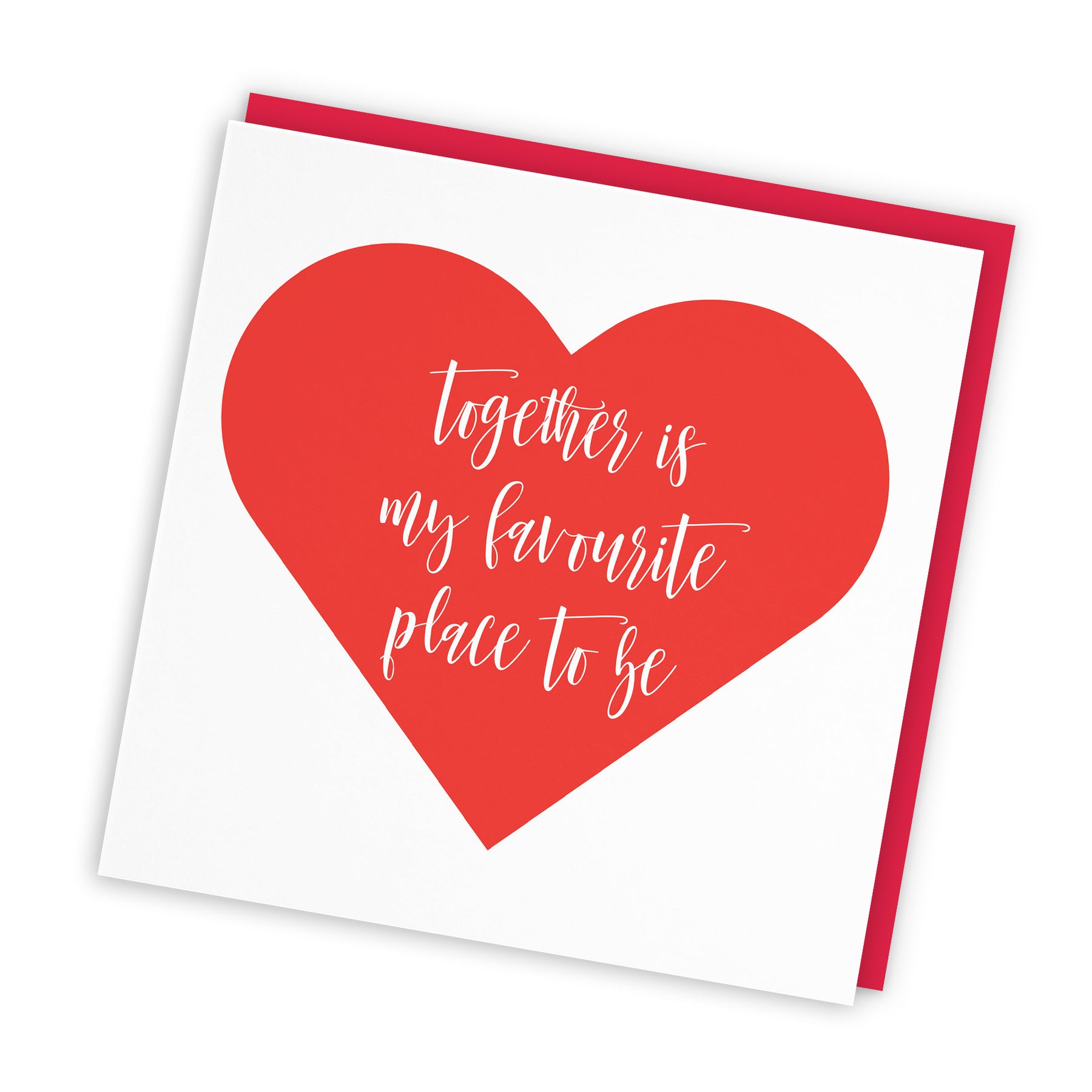 Hunts England - Romantic Valentine's Day Card - Together Is My Favourite Place To Be - Love Heart Collection.
