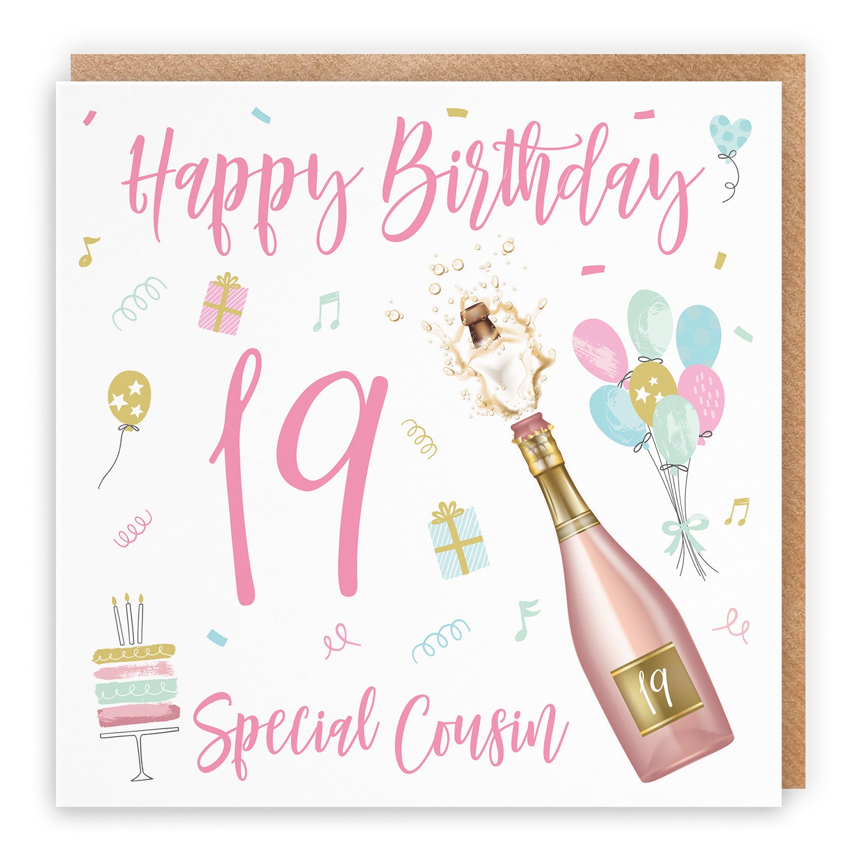 Hunts England - Cousin 19th Female Birthday Card - For Her - Happy Birthday - Special Cousin - 19 - Champagne Collection.