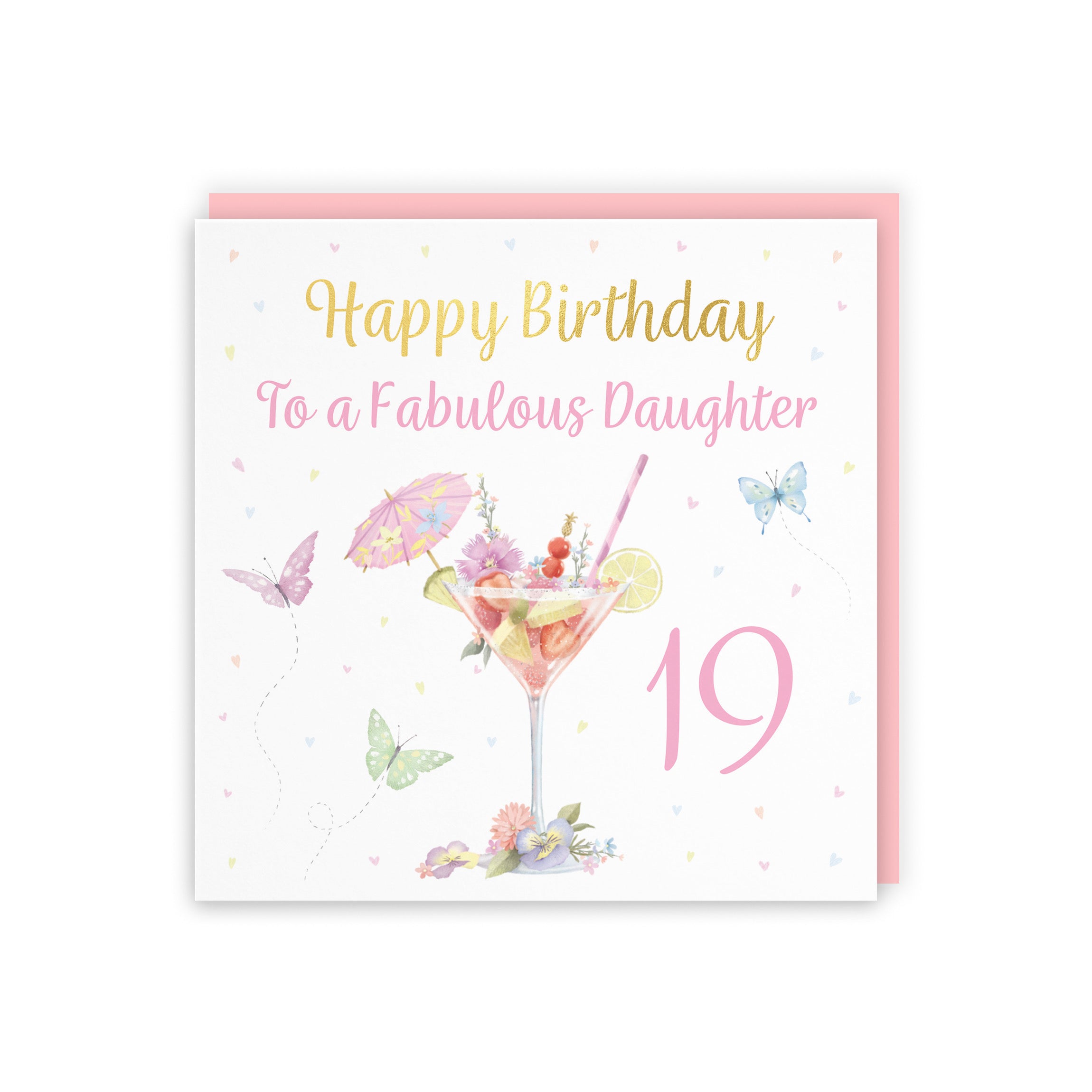 Hunts England - 19th Daughter Pink Cocktail And Butterflies Birthday Card - Gold Foil - Milo's Gallery - Age 19 Drinks, Flowers, Hearts Birthday Card For Daughter - Age Nineteen.