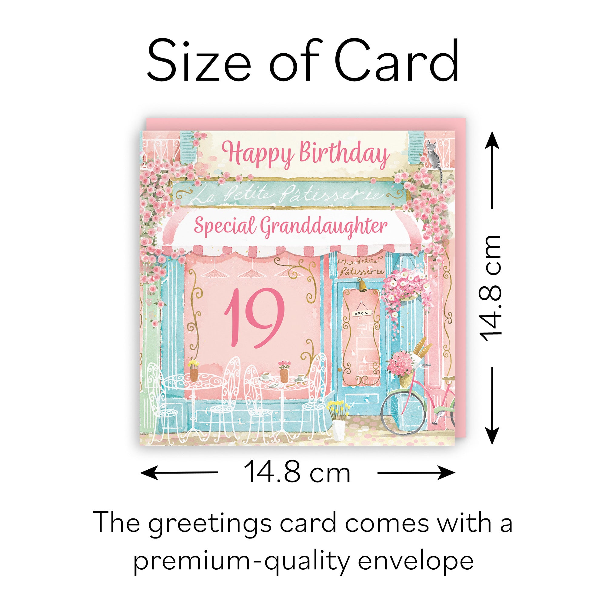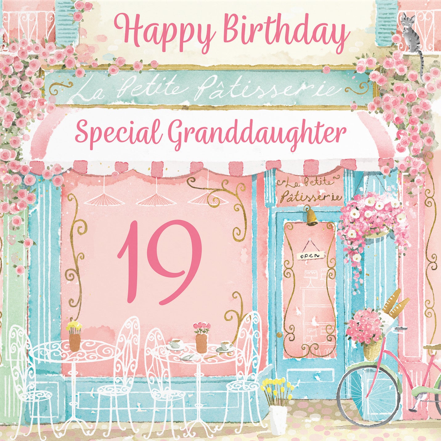 Hunts England - 19th Granddaughter La Petite Patisserie Birthday Card - Charming Pink Bakery, Pretty French Cafe Female Floral Design - Age 19 Happy Birthday Granddaughter Card - Milo's Gallery.