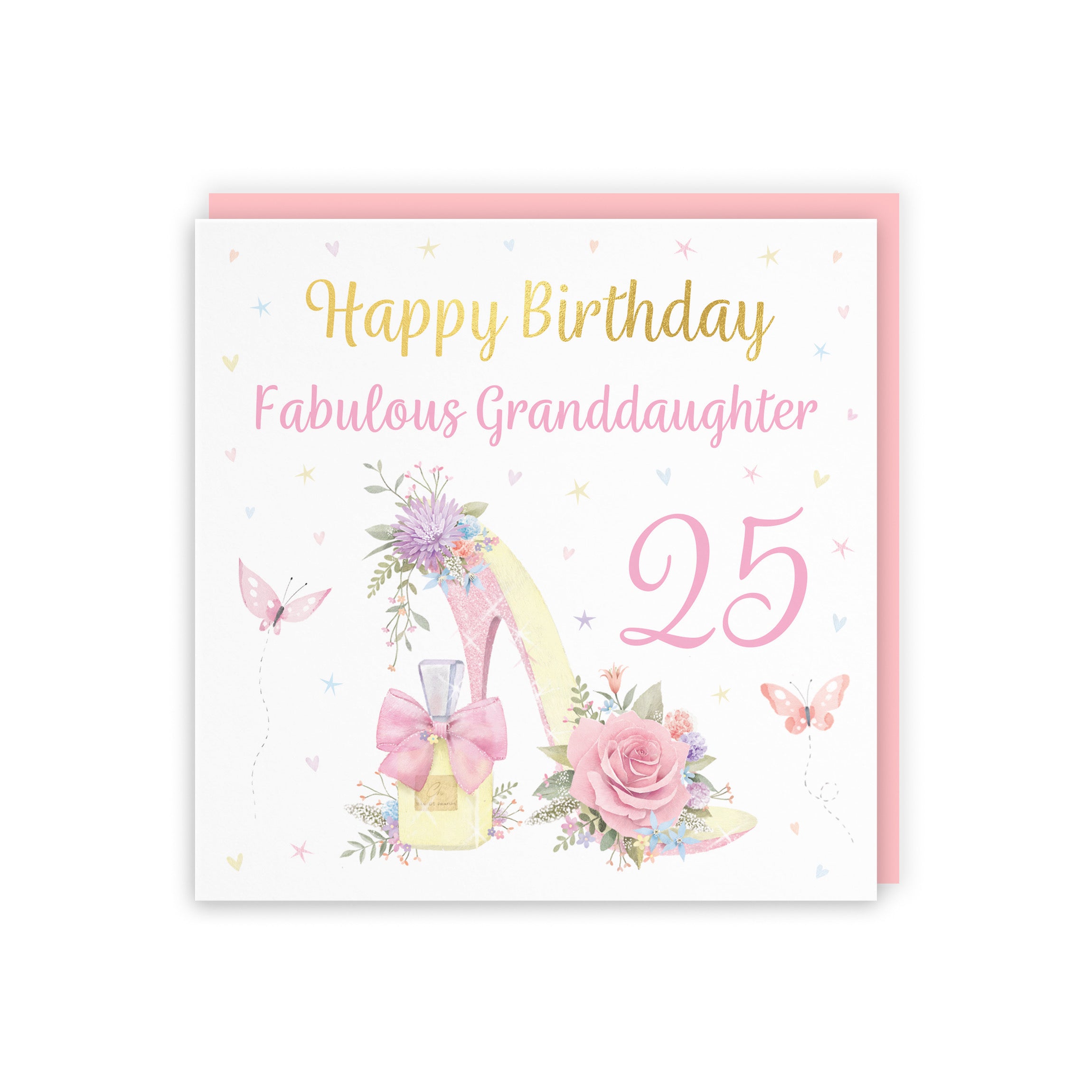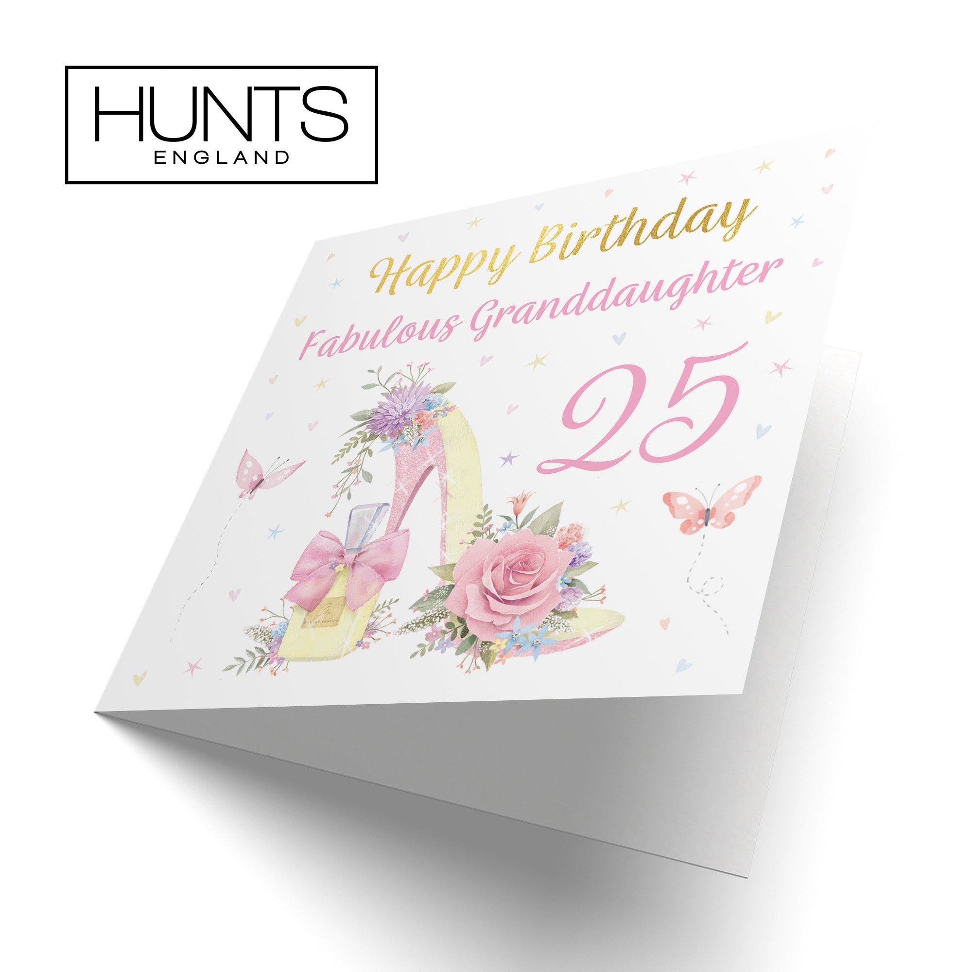 Hunts England - 25th Granddaughter High Heel And Perfume Birthday Card - Gold Foil - Milo's Gallery - Age 25 Pretty Birthday Card For Granddaughter - Age Twenty Five.