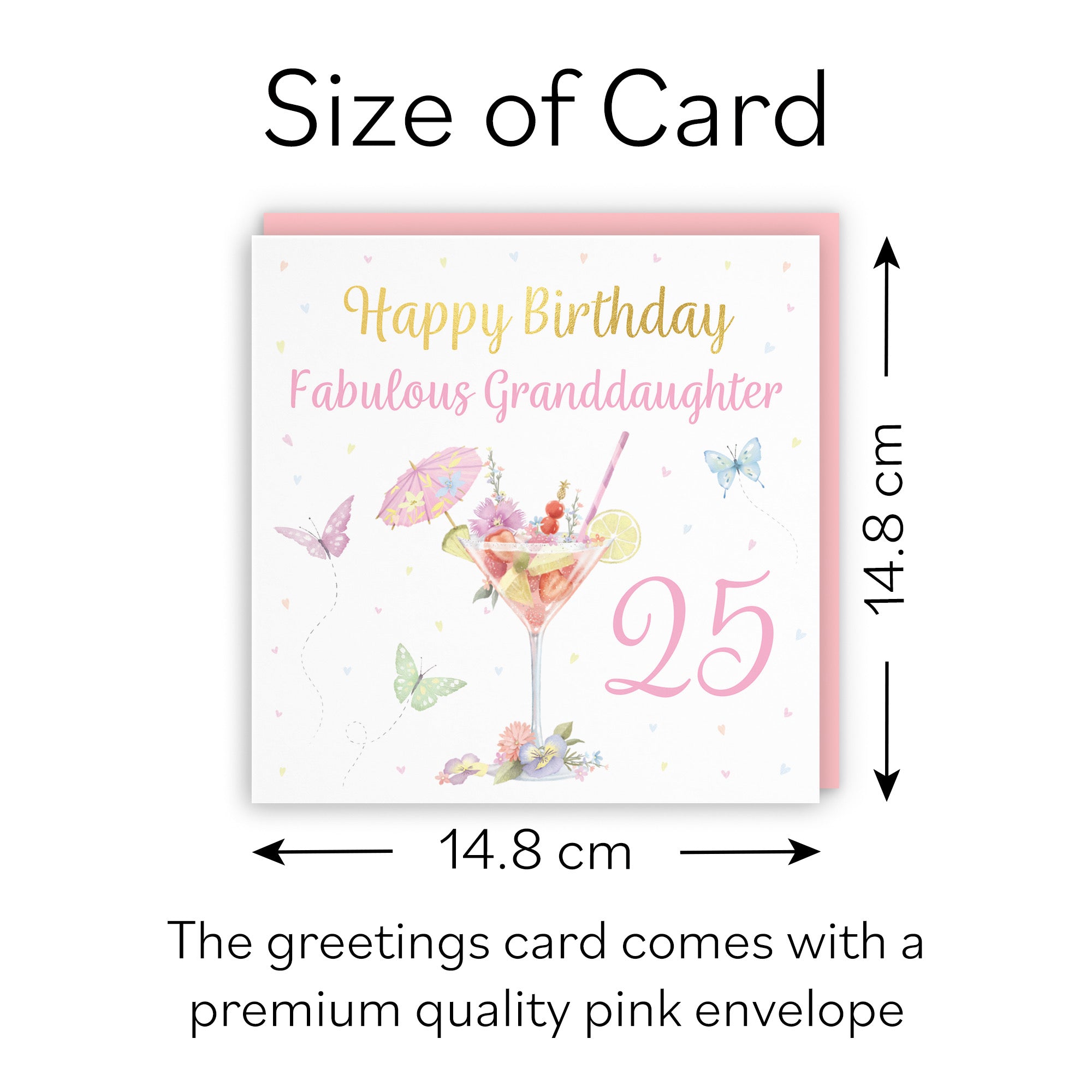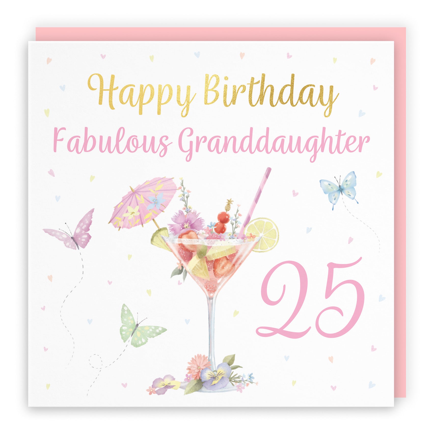 Hunts England - 25th Granddaughter Pink Cocktail And Butterflies Birthday Card - Gold Foil - Milo's Gallery - Age 25 Birthday Card For Granddaughter - Age Twenty Five.