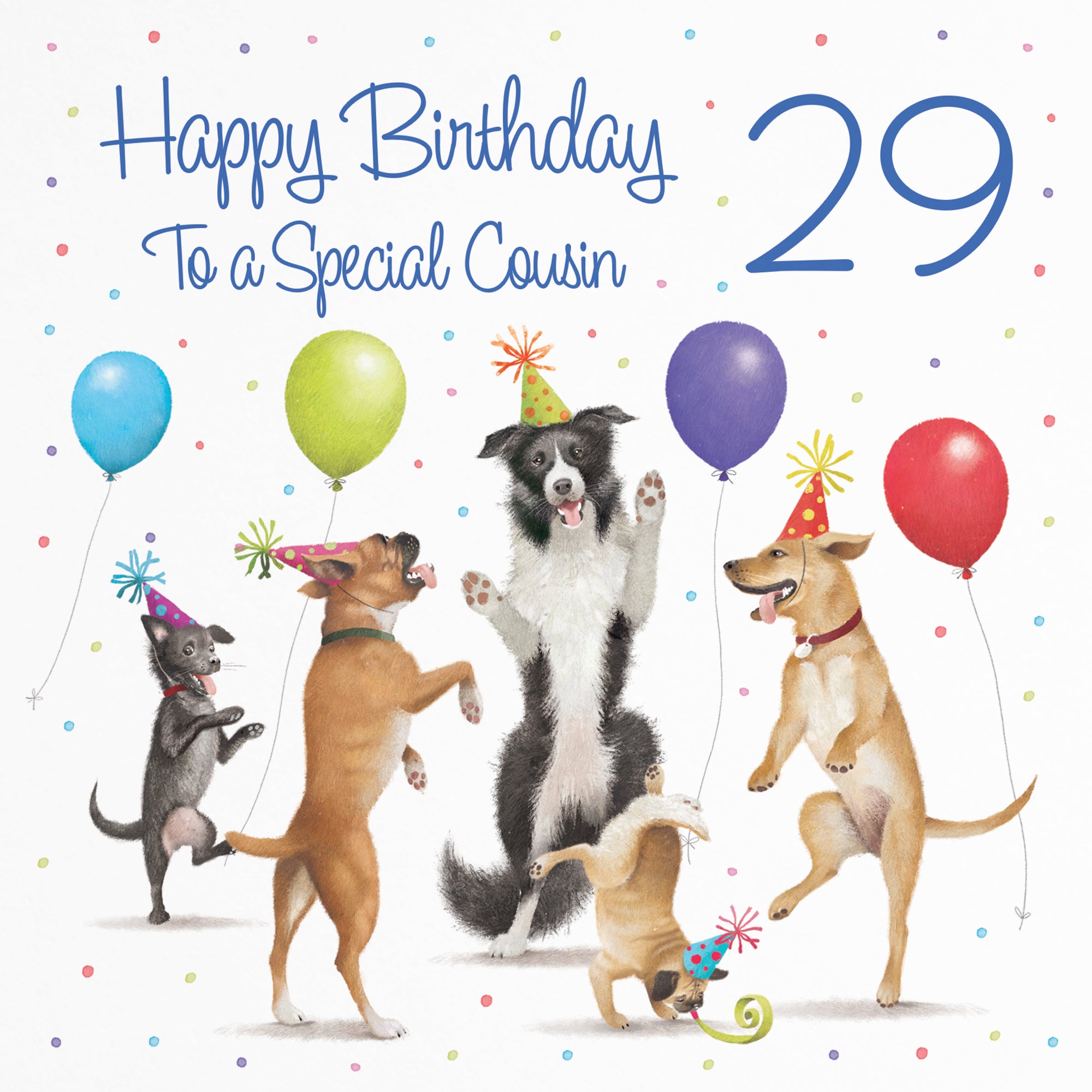 Hunts England - 29th Cousin Male / Female Birthday Card - Dancing Dogs - To A Special Cousin - Age 29 - Men's / Women's 29th Birthday Card For Cousin - Milo's Gallery - Age Twenty Nine.
