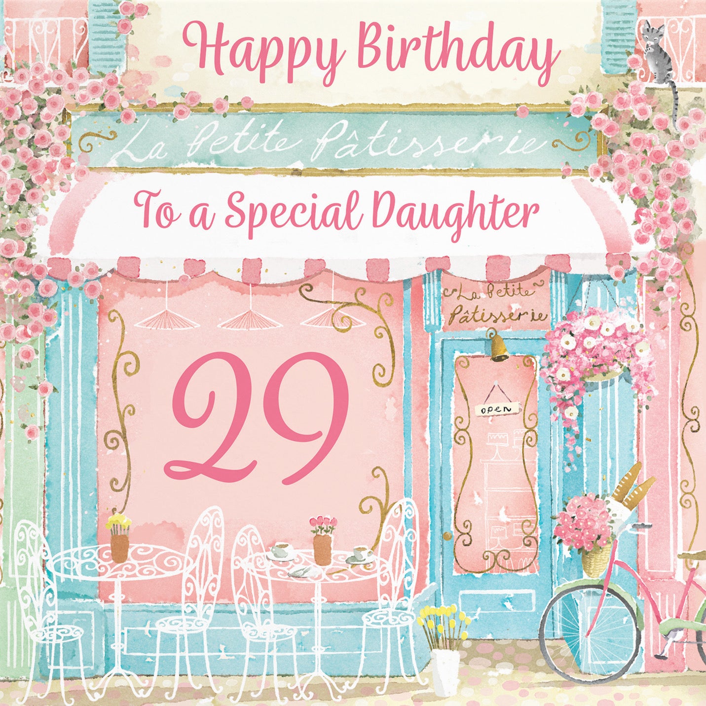 Hunts England - 29th Daughter La Petite Patisserie Birthday Card - Charming Pink Bakery, Pretty French Cafe Female Floral Design - Age 29 Happy Birthday Daughter Card - Milo's Gallery.