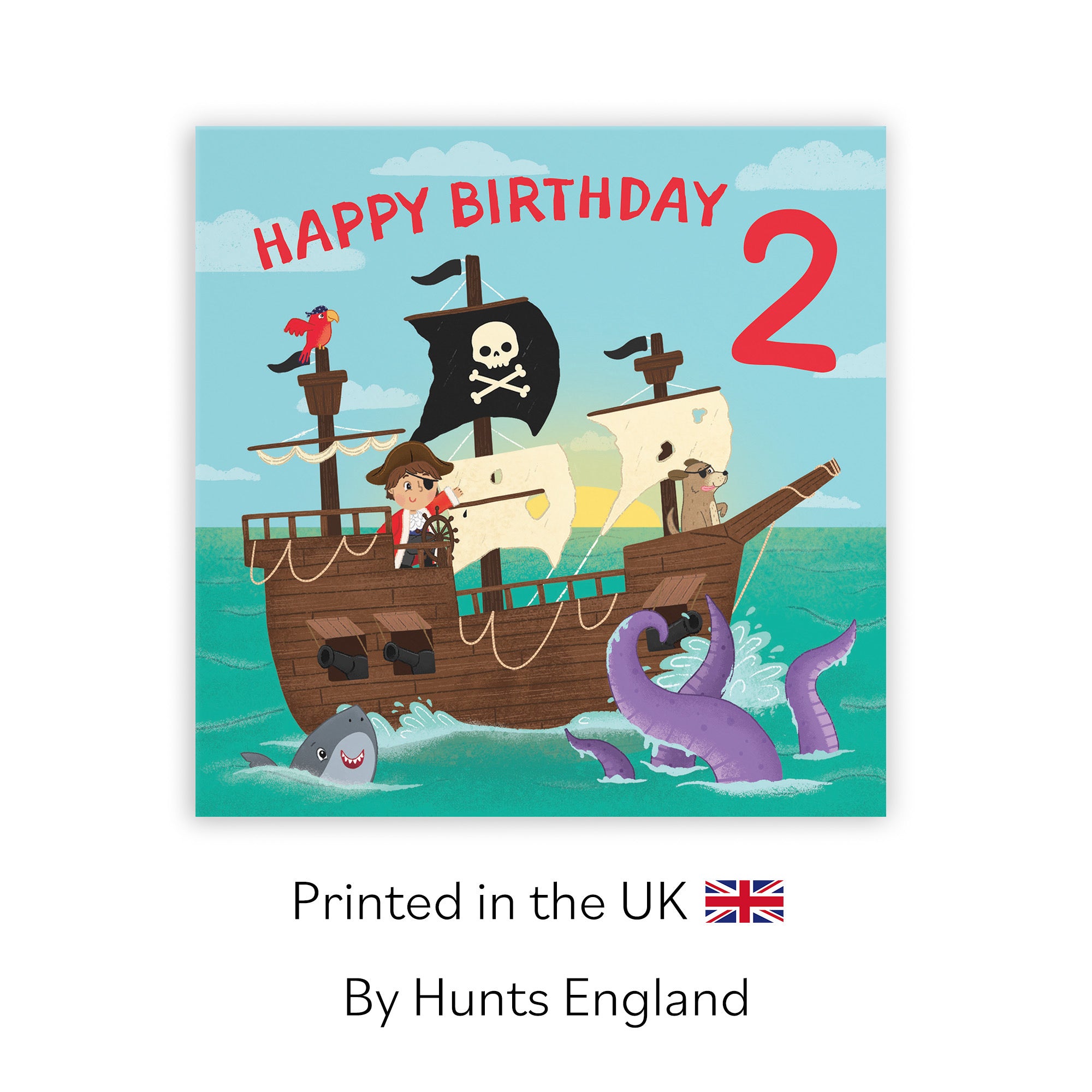 Hunts England - Boys Pirate Ship 2nd Birthday Card - Happy Birthday - 2 - Pirate Ship On High Seas - Age 2 - Imagination Collection.