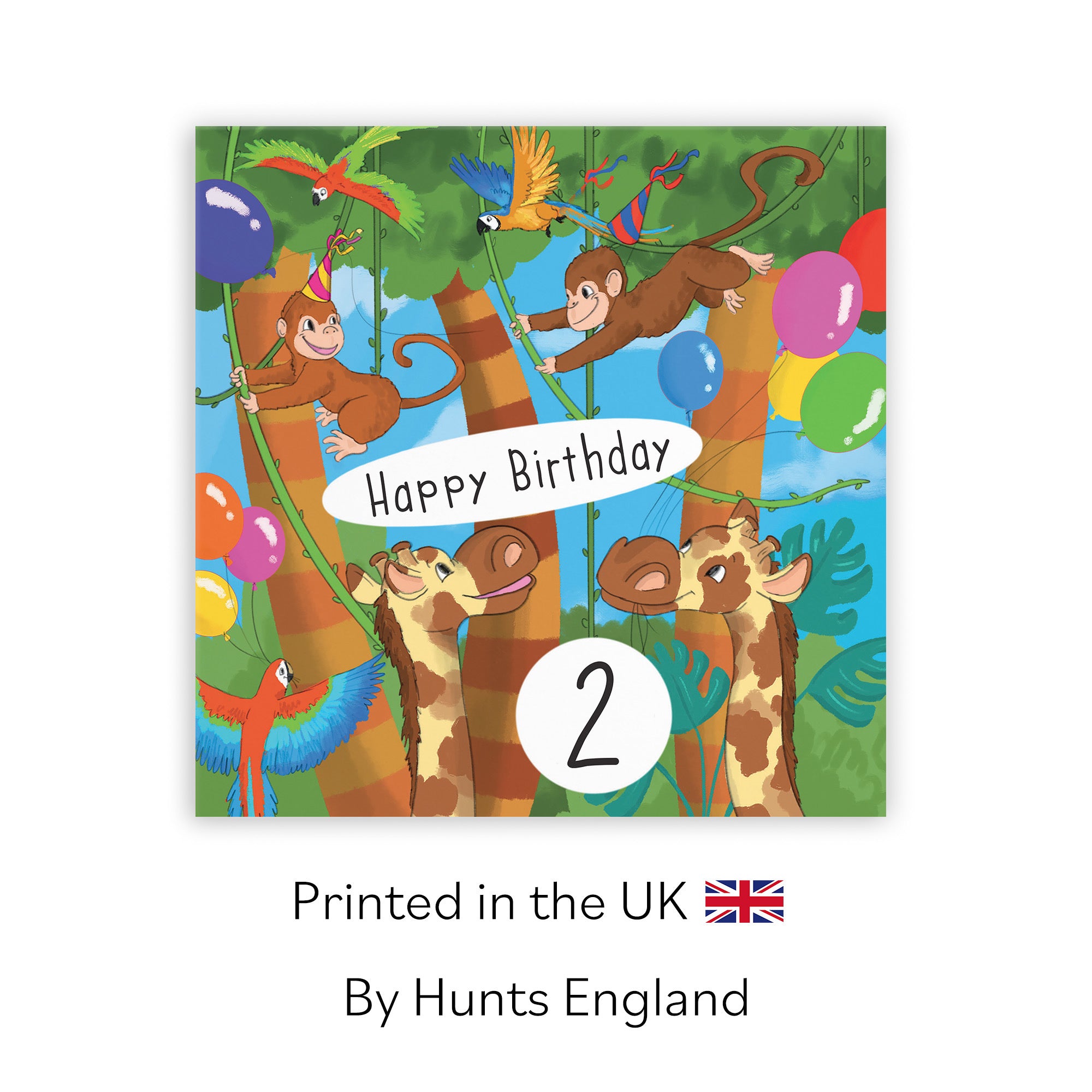 Hunts England - Monkey 2nd Birthday Card - Happy Birthday - 2 - Boys / Girls - Monkeys, Giraffes & Parrots Kids Card - Jungle Collection.