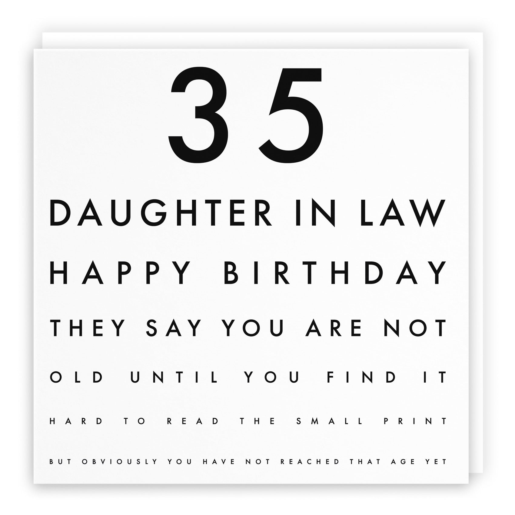 Hunts England - Daughter In Law 35th Humorous Birthday Card - 35 Daughter In Law - Happy Birthday - They Say You Are Not Old Until You Find It Hard To Read The Small Print... - Letters Collection.