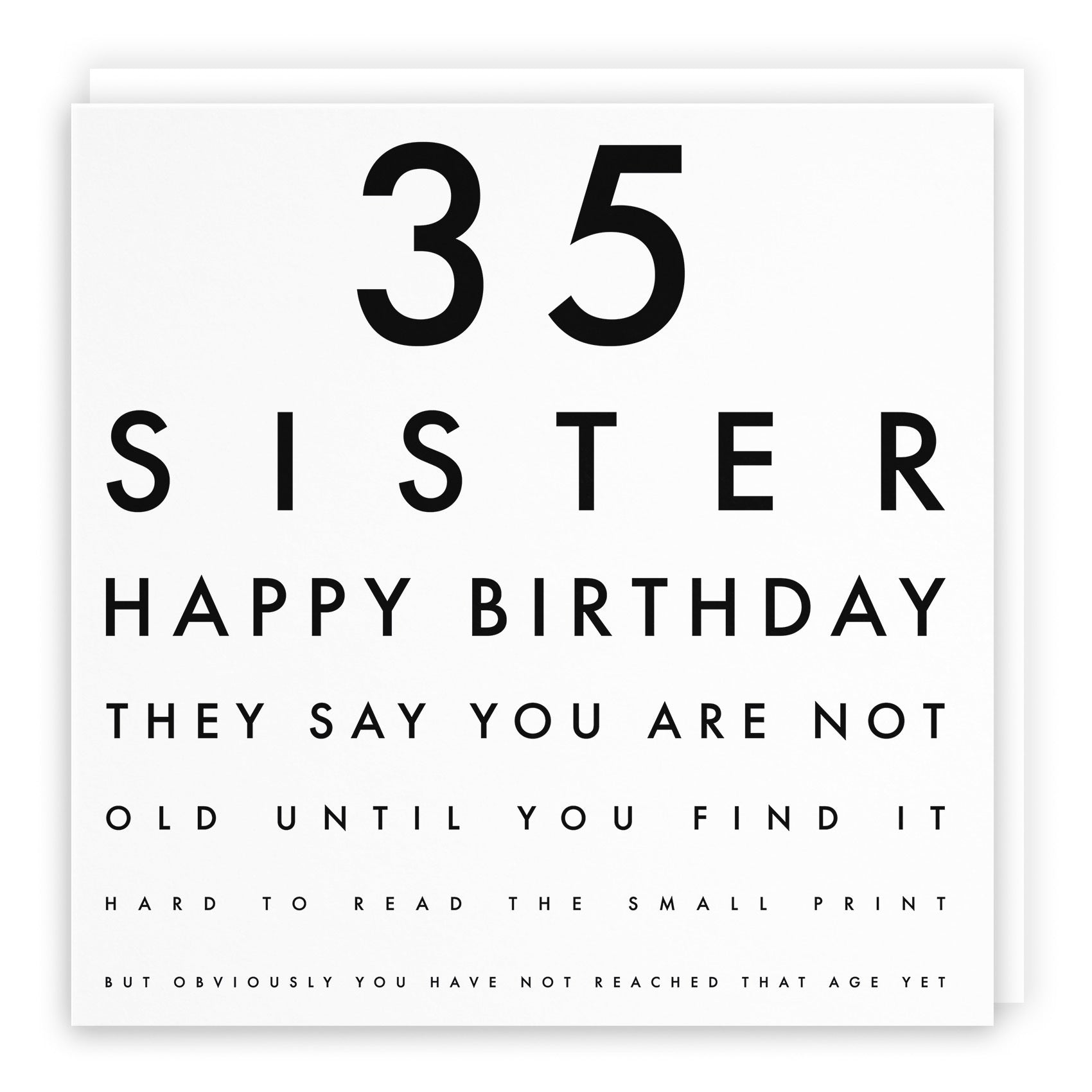 Hunts England - Sister 35th Humorous Birthday Card - 35 Sister - Happy Birthday - They Say You Are Not Old Until You Find It Hard To Read The Small Print... - Letters Collection.