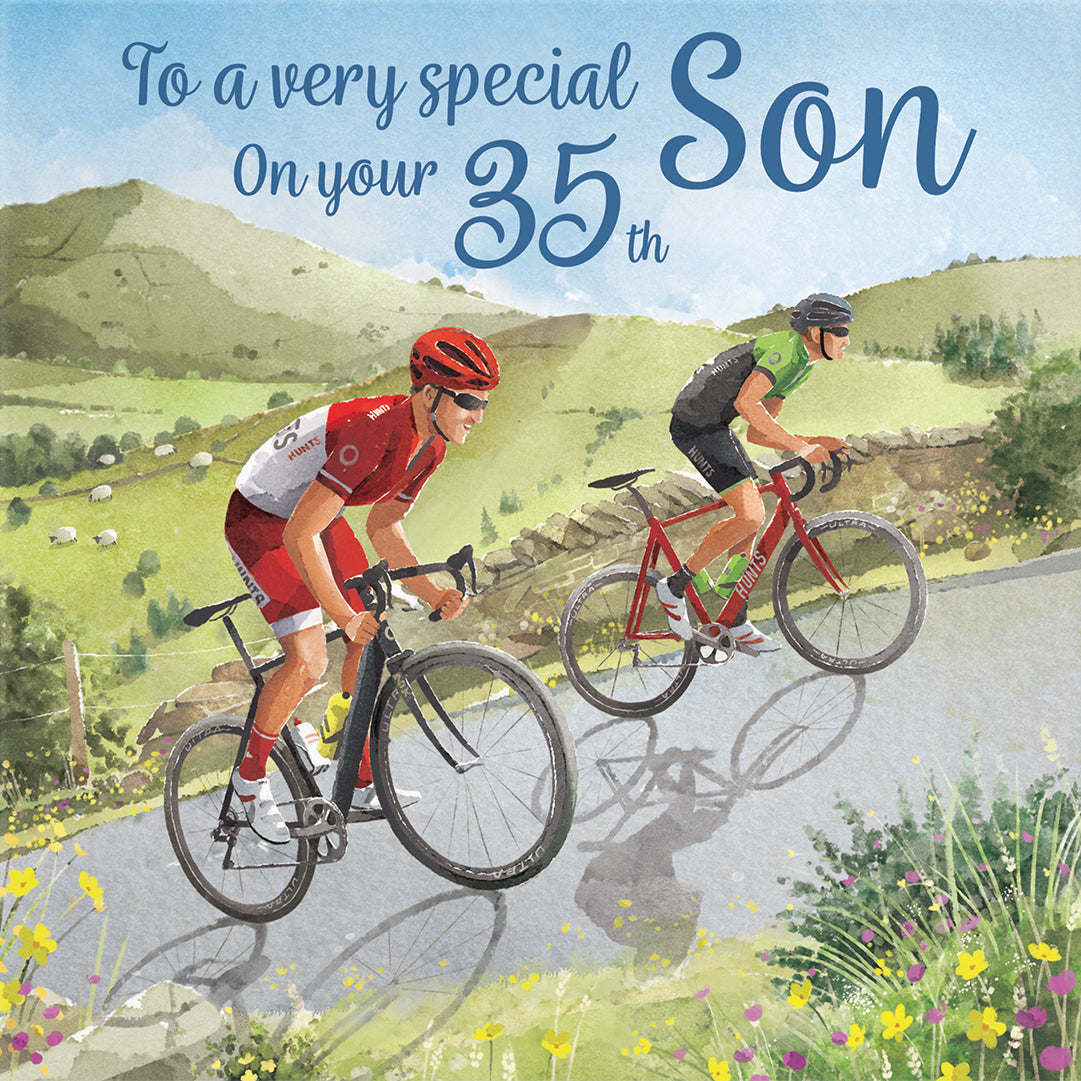 Hunts England - 35th Son Road Cycling Birthday Card - Hill Climb - Road Bikes - Milo's Gallery - Age 35 Birthday Card For Son - Men's Birthday Card - Age Thirty Five - Son Birthday.