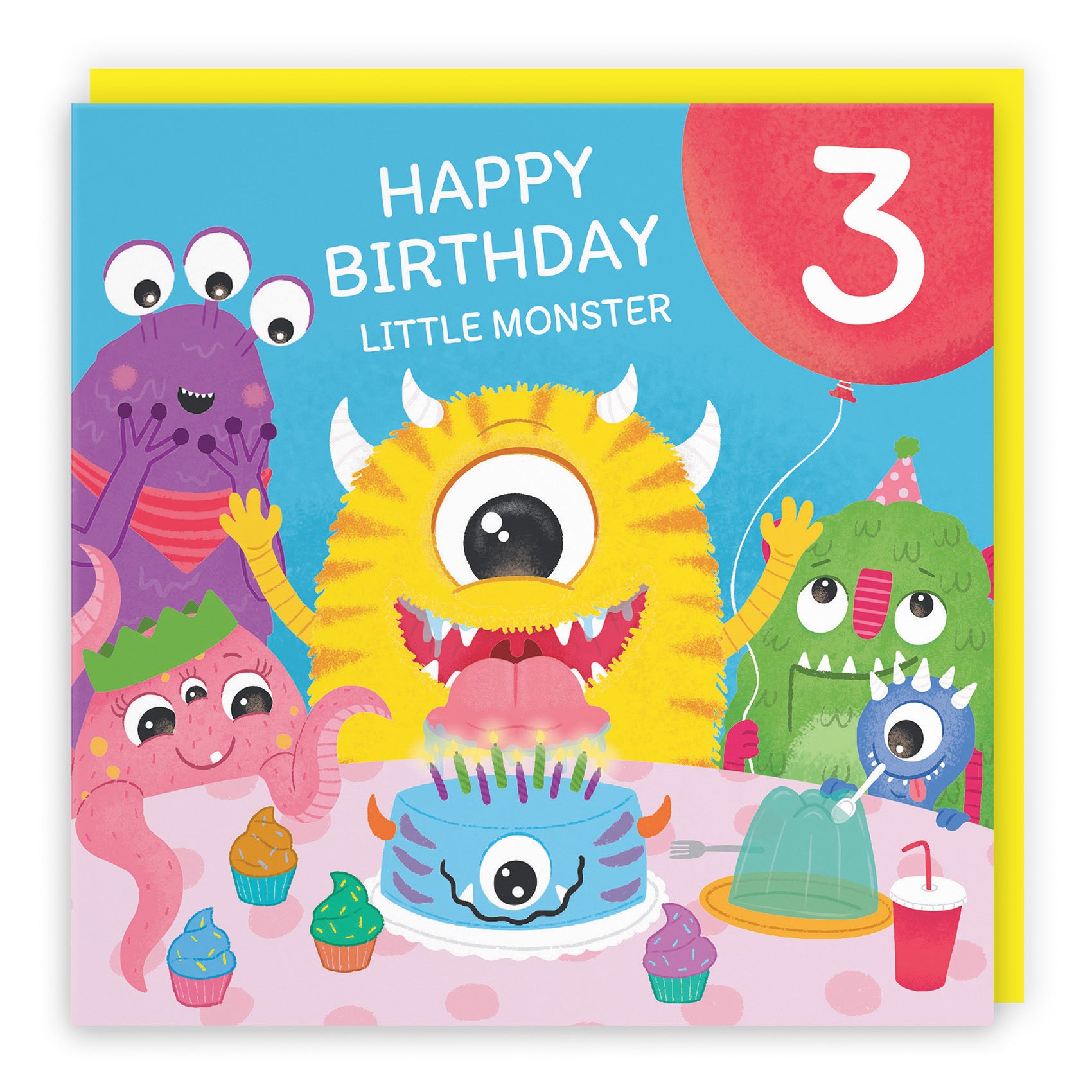 Hunts England - 3rd Birthday Boys / Girls Monsters Party Card - Happy Birthday - Little Monster - 3 - Age 3 - Imagination Collection.