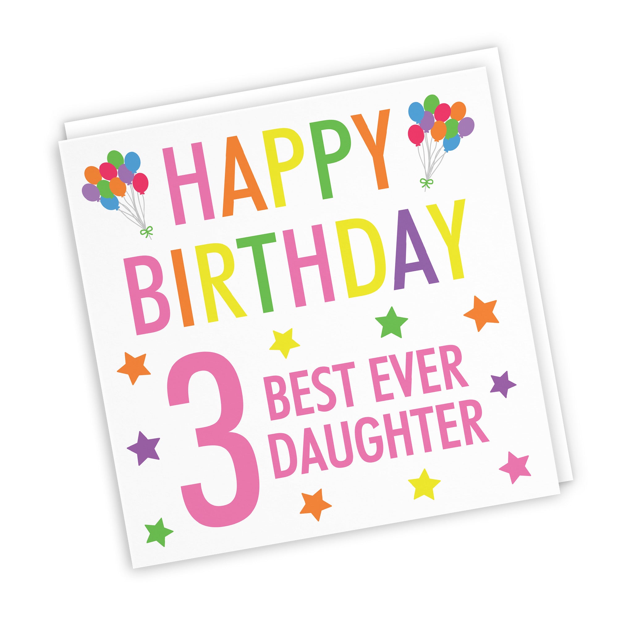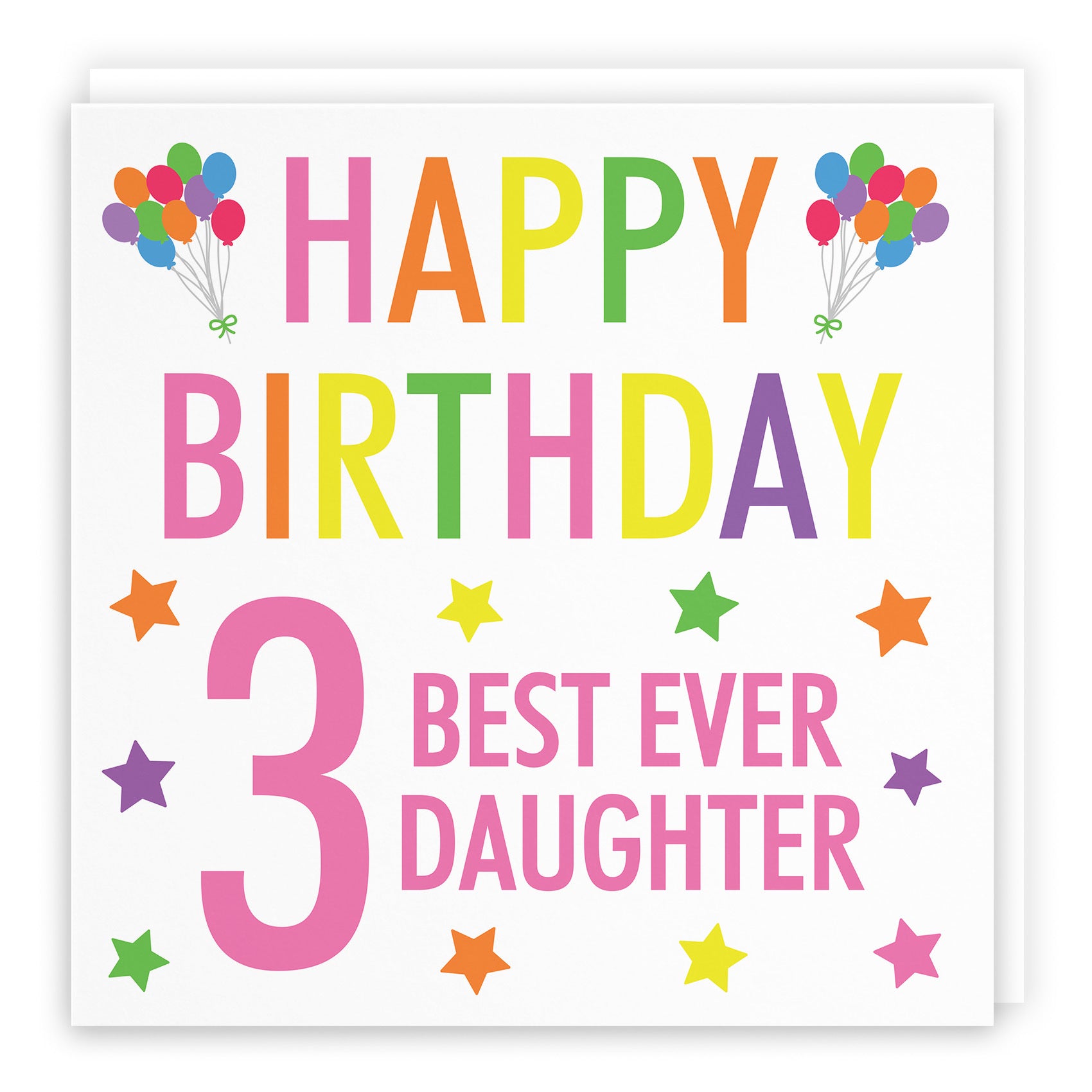 Hunts England - Daughter 3rd Birthday Card - 'Happy Birthday' - 'Best Ever Daughter' - Colourful Collection.