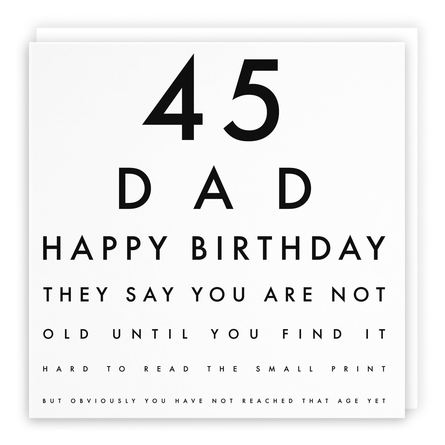 Hunts England - Dad 45th Humorous Birthday Card - 45 Dad - Happy Birthday - They Say You Are Not Old Until You Find It Hard To Read The Small Print... - Letters Collection.